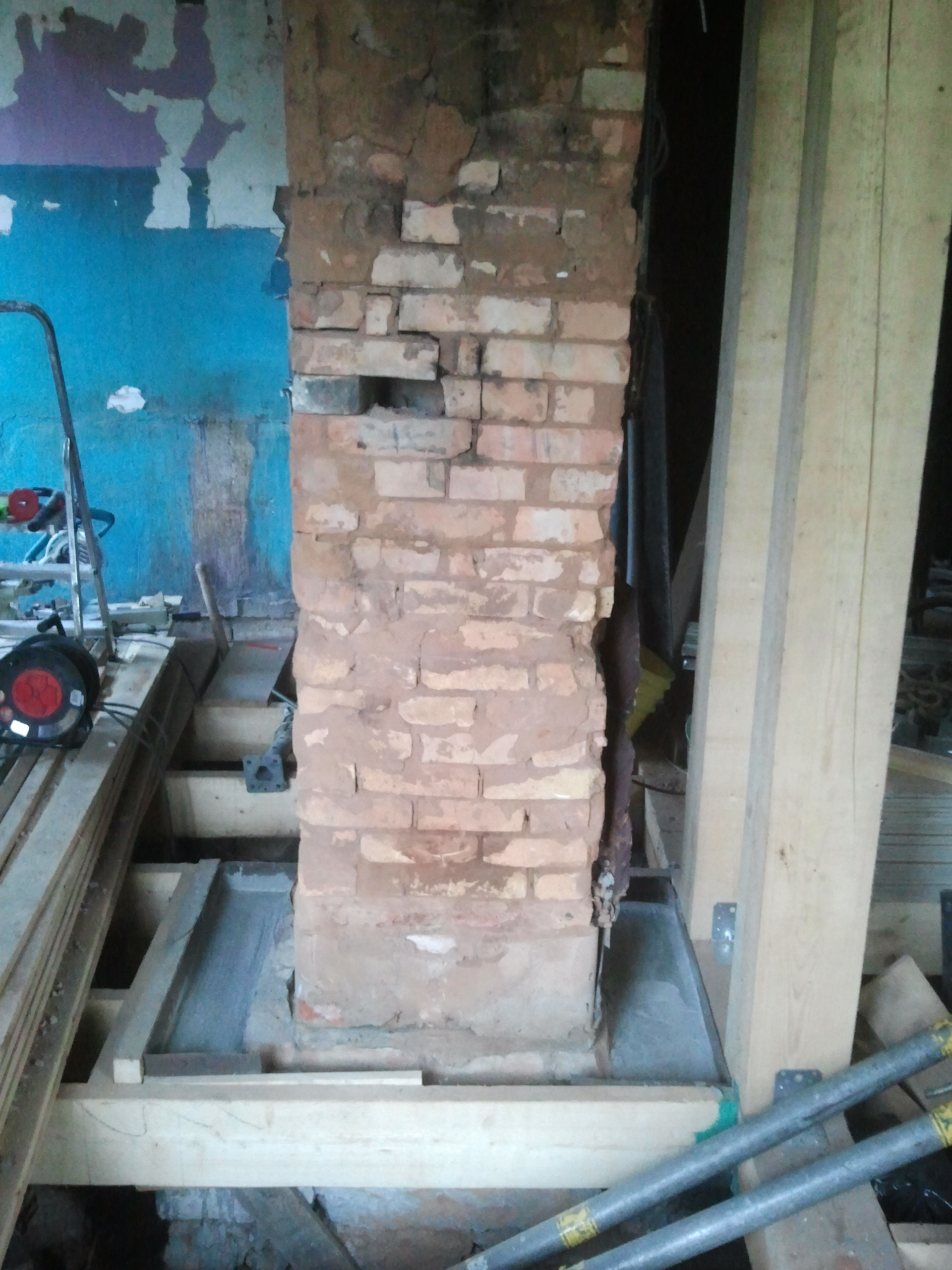 5. vajadusel eemaldada ahju keskosast tellised ning paigaldada keskele üks UNP200 profiil. Võimalik, et selleks reaalne vajadus puudub, sest ahju ülemine osa ning ülemise naabri ahju vundament on võrdlemisi kõvast ja mittepudedast tsemendisegust tehtud.
