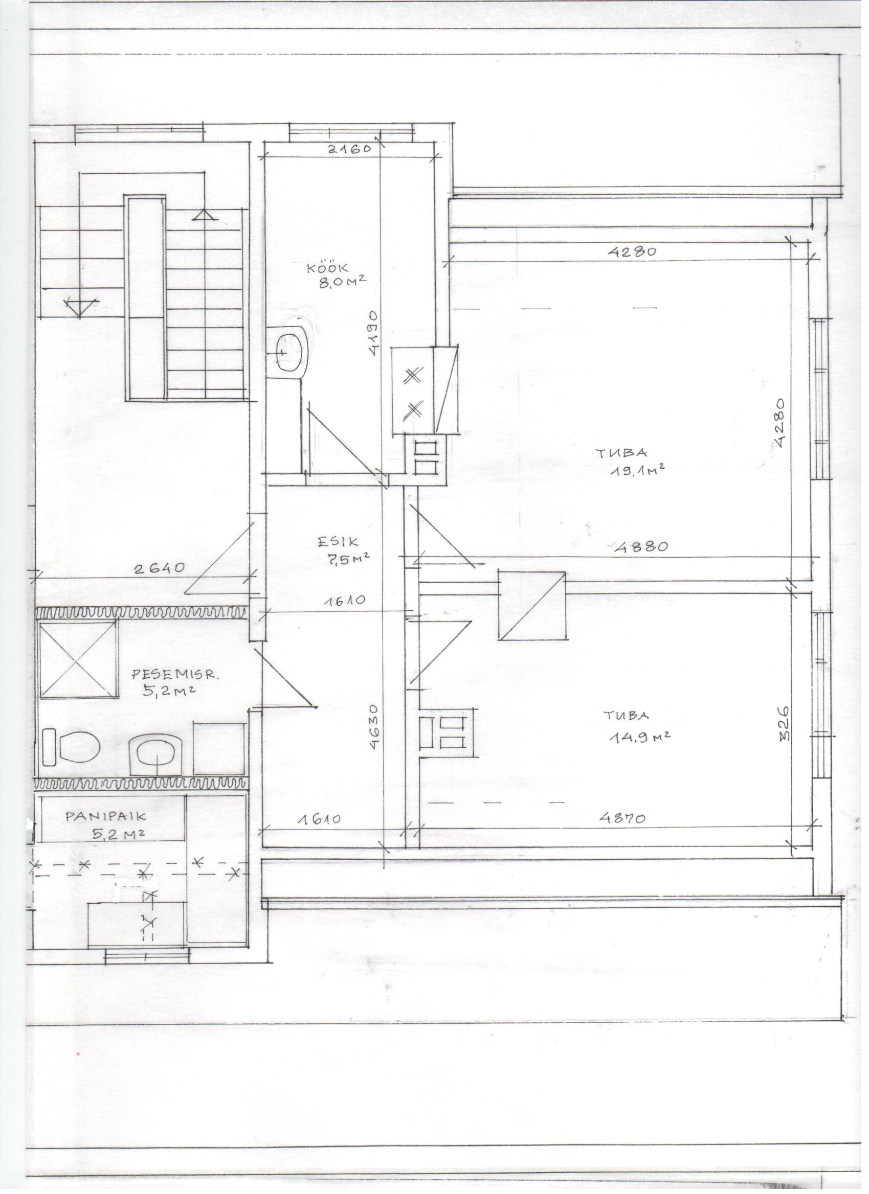 Vana kips lagedel ja osadelt seintelt puhastatud. Vaja oleks lagede sirgu ajamine. Välisseina läheks viisnurga isoplaat lisasoojustuse jaoks ja ülejäänud seintesse tavaline kipsplaat.