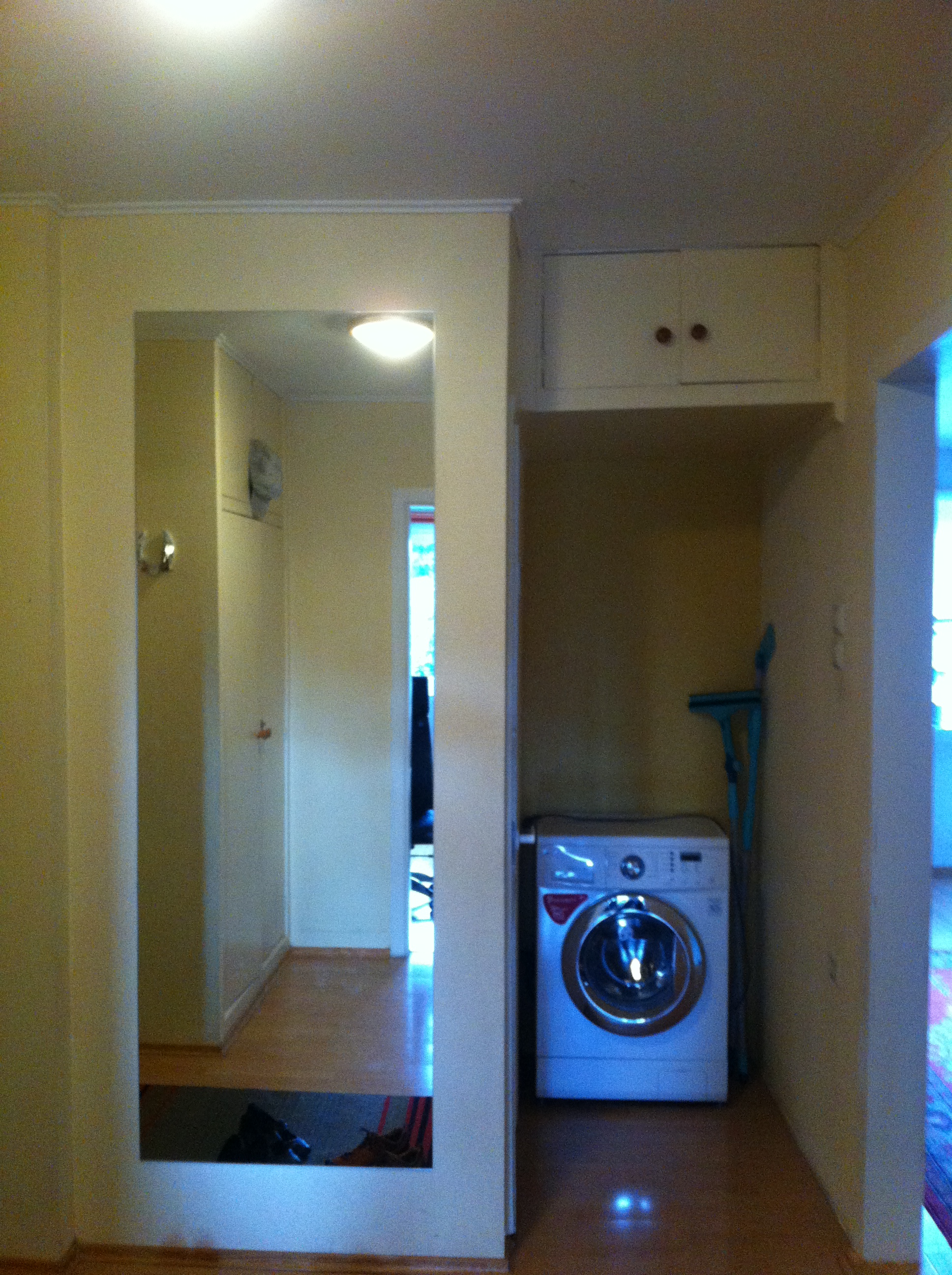 WC ja vannituba on juba varasemalt kokku ehitatud. Soov on vannituba veel suuremaks teha, kasutades ära koridori jäävat vahekäiku (vt. pilte).