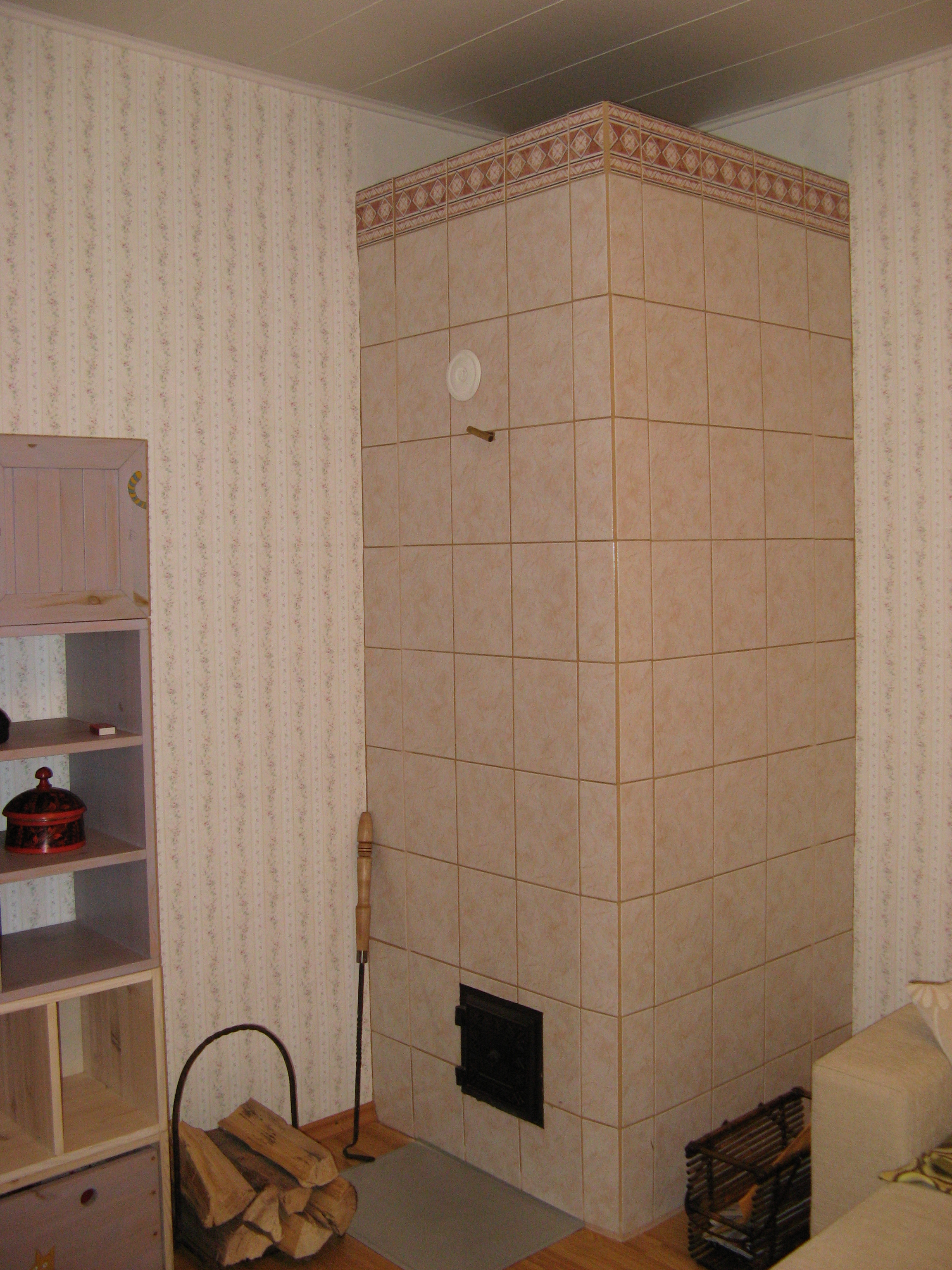 Elutoas on ahi, mis on kaetud kahhelplaatidega, mille all on eesti-aegne glasuurpott. Kui plaatide eemaldamisega jääb pott ilusaks, siis on see vaja puhastada ja vahetada ainult ahju uks. Kui plaatide eemaldamisega potti päästa ei ole võimalik, tuleb ahi lisaks uue kiviga katta. Ahju ja välisseina vaheline õhuvahe peab jääma külje pealt avatuks.
