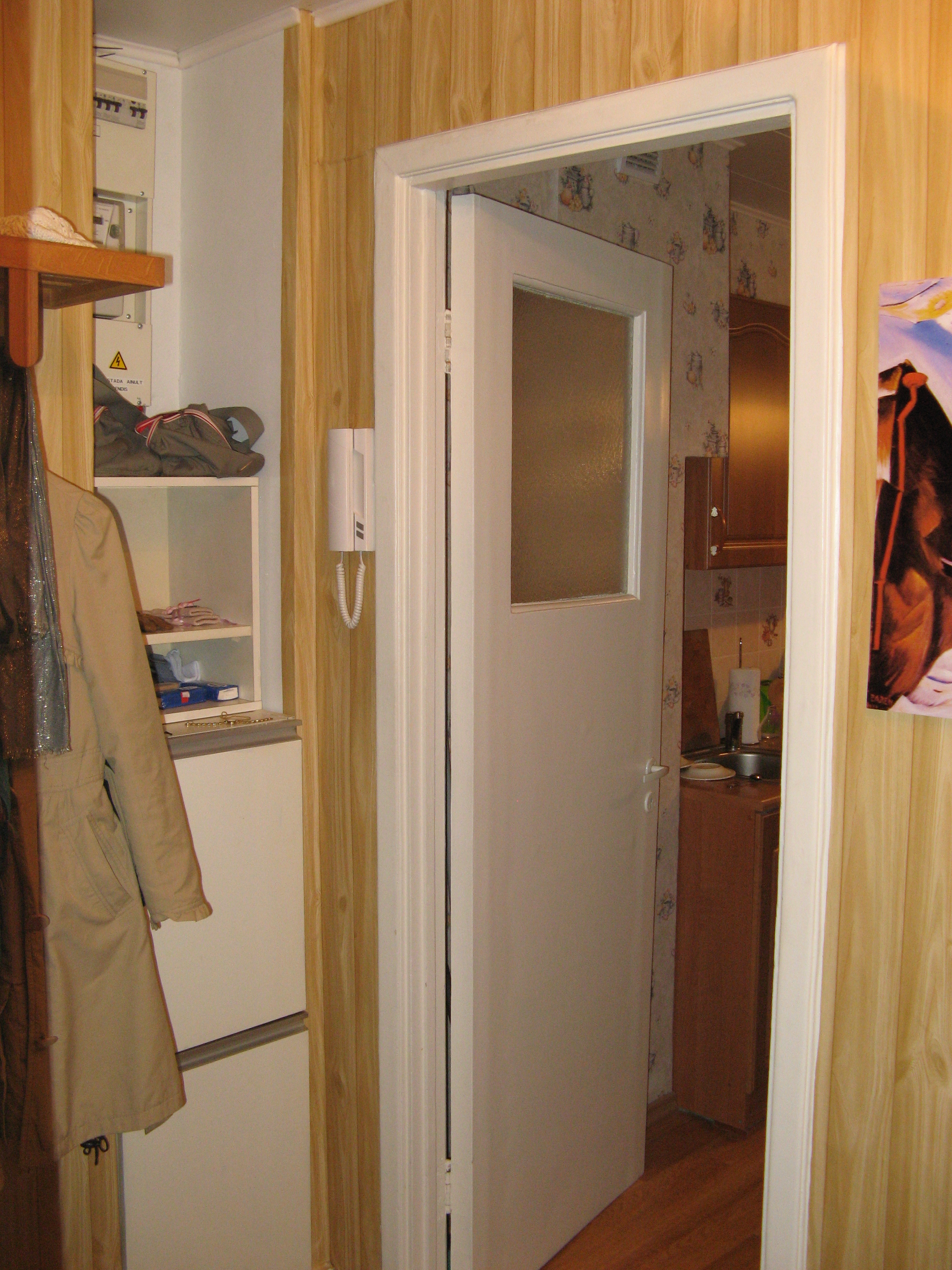 Elutoas on sisseehitatud väike kapp. Kapile uue ukse (koos kastiga) paigaldamine. Magamistoa ukse paigaldamine.