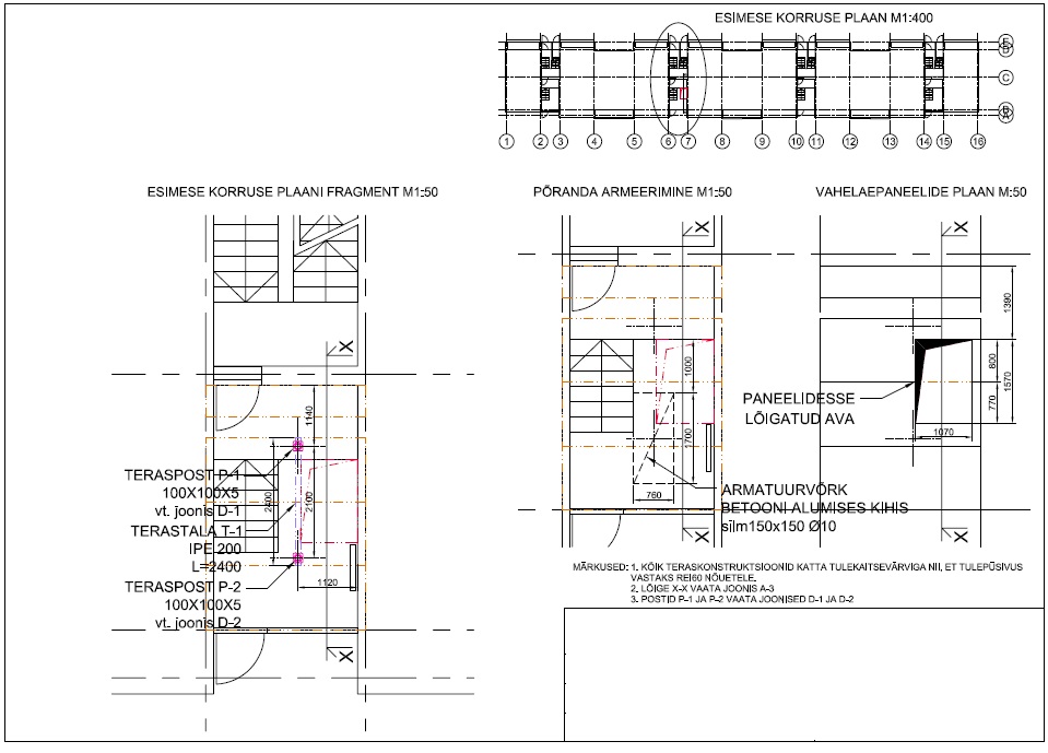 Projekteeritud on ava 1070x1570 esimese korruse vahelaepaneelidesse ja
