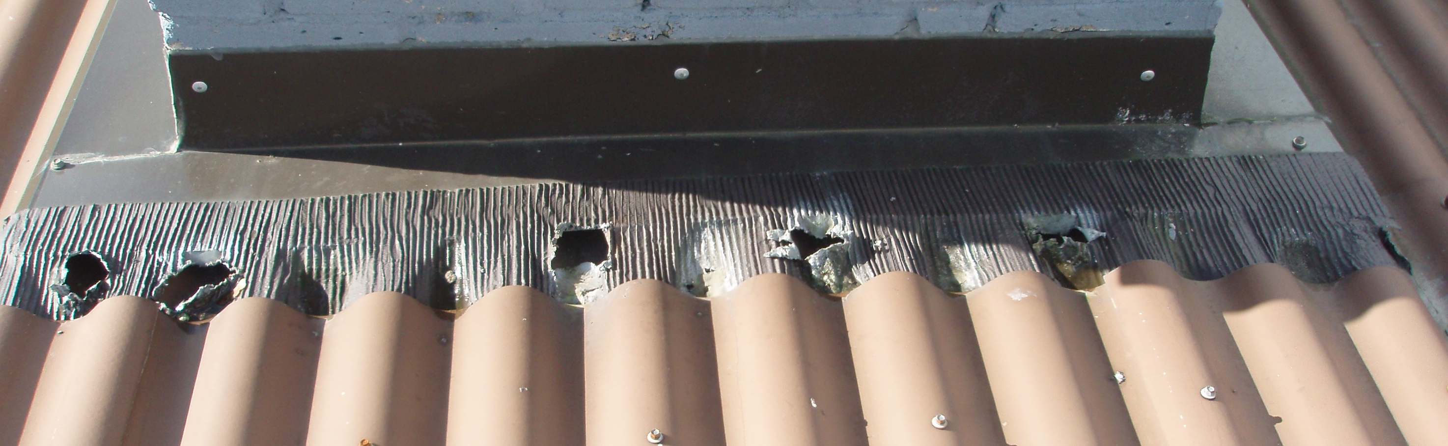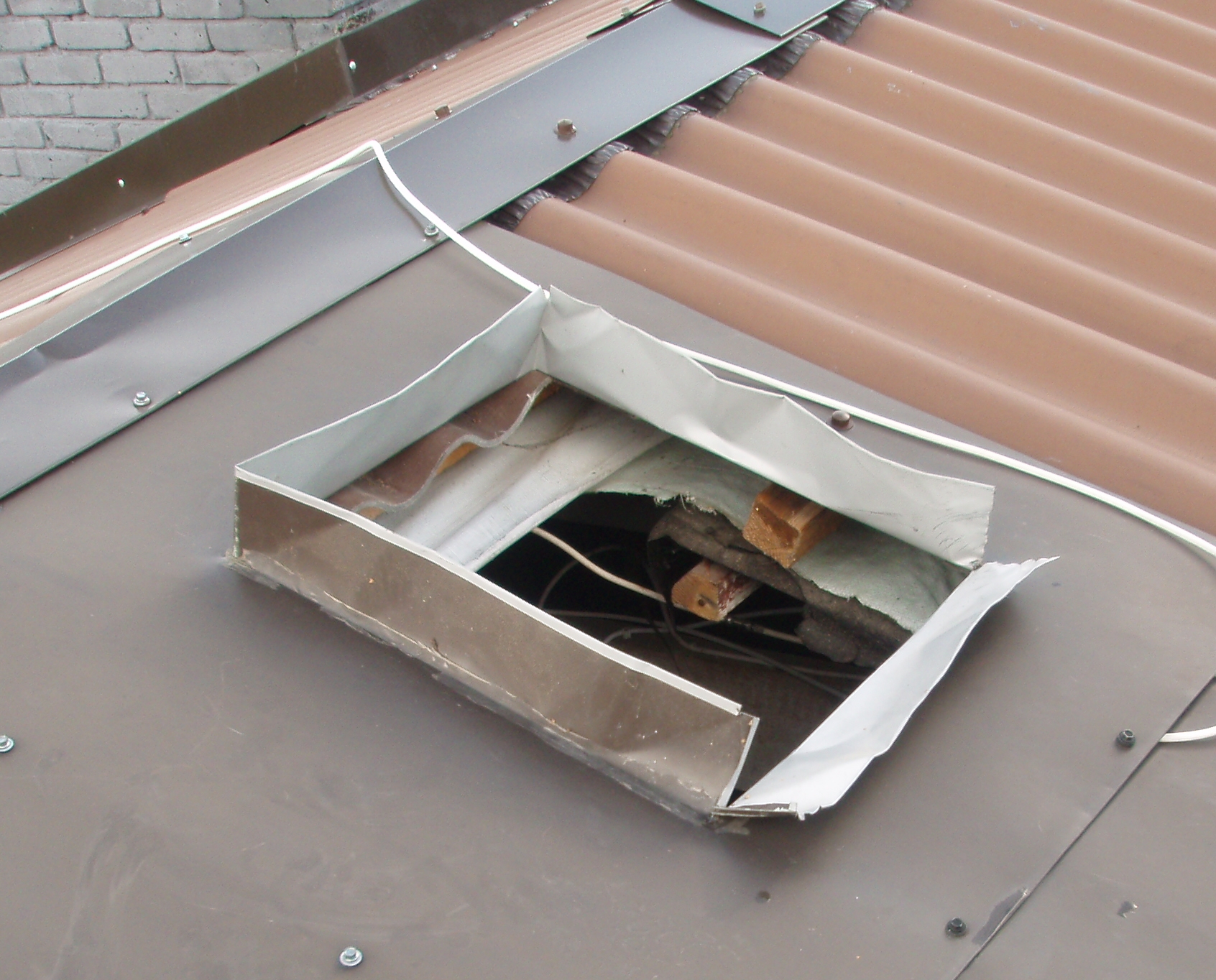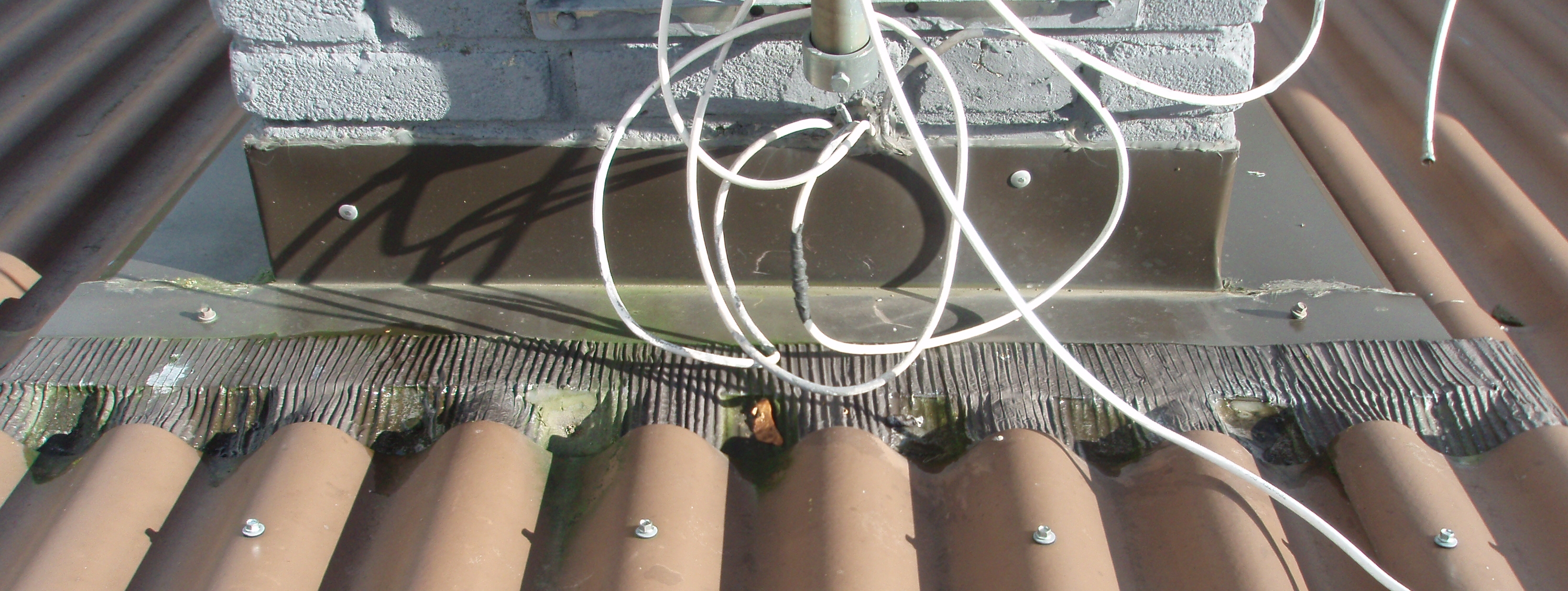 Leke tuleb 5 korstna harjapoolse korsntapleki ja eterniitkatuse laine üleminekuks kasutatud pigitatud fooliumi sisse tekkinud aukudest. Osasid auke kindlasti enam silikoniga parandada ei saa, kuna liiga suured. Seega oleks minu arvates õige vahetada kogu pikkuses kõik "pigifooliumid" välja ca 5x1m. Samuti on ühe antenni ümber sama foolium kadunud.