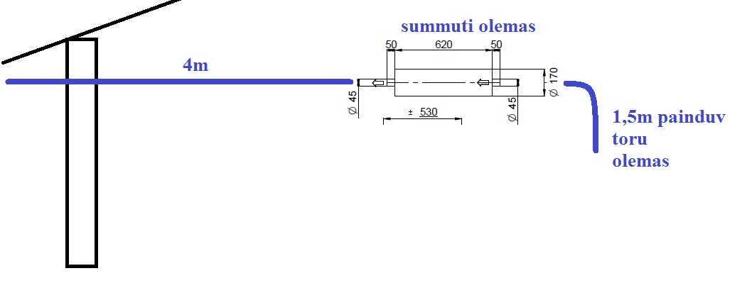 Vaja paigaldada lae alla suitsutoru, teostada üks läbindus 25cm sarrustatud betoonseinast ja ühendada summutiga.