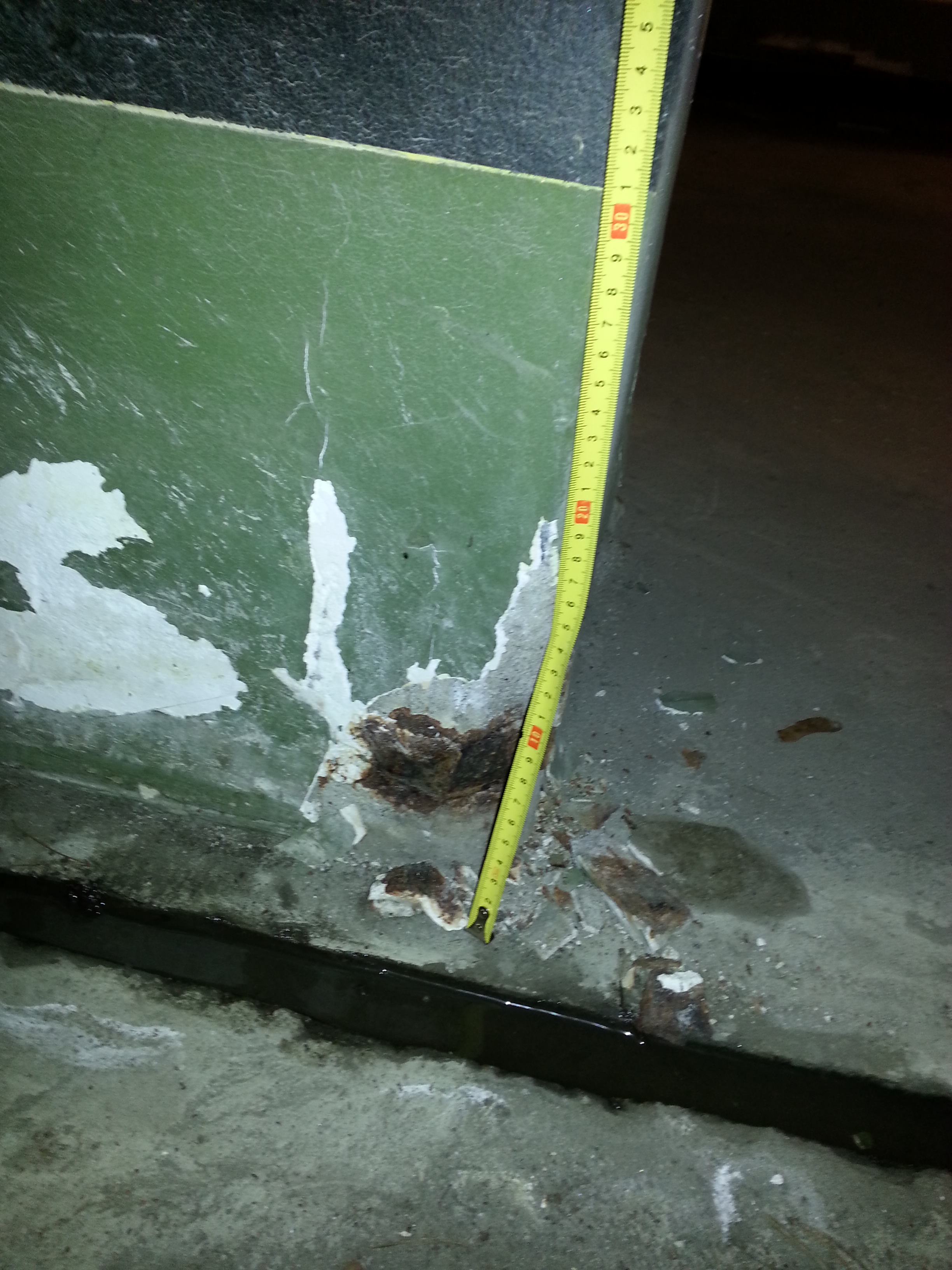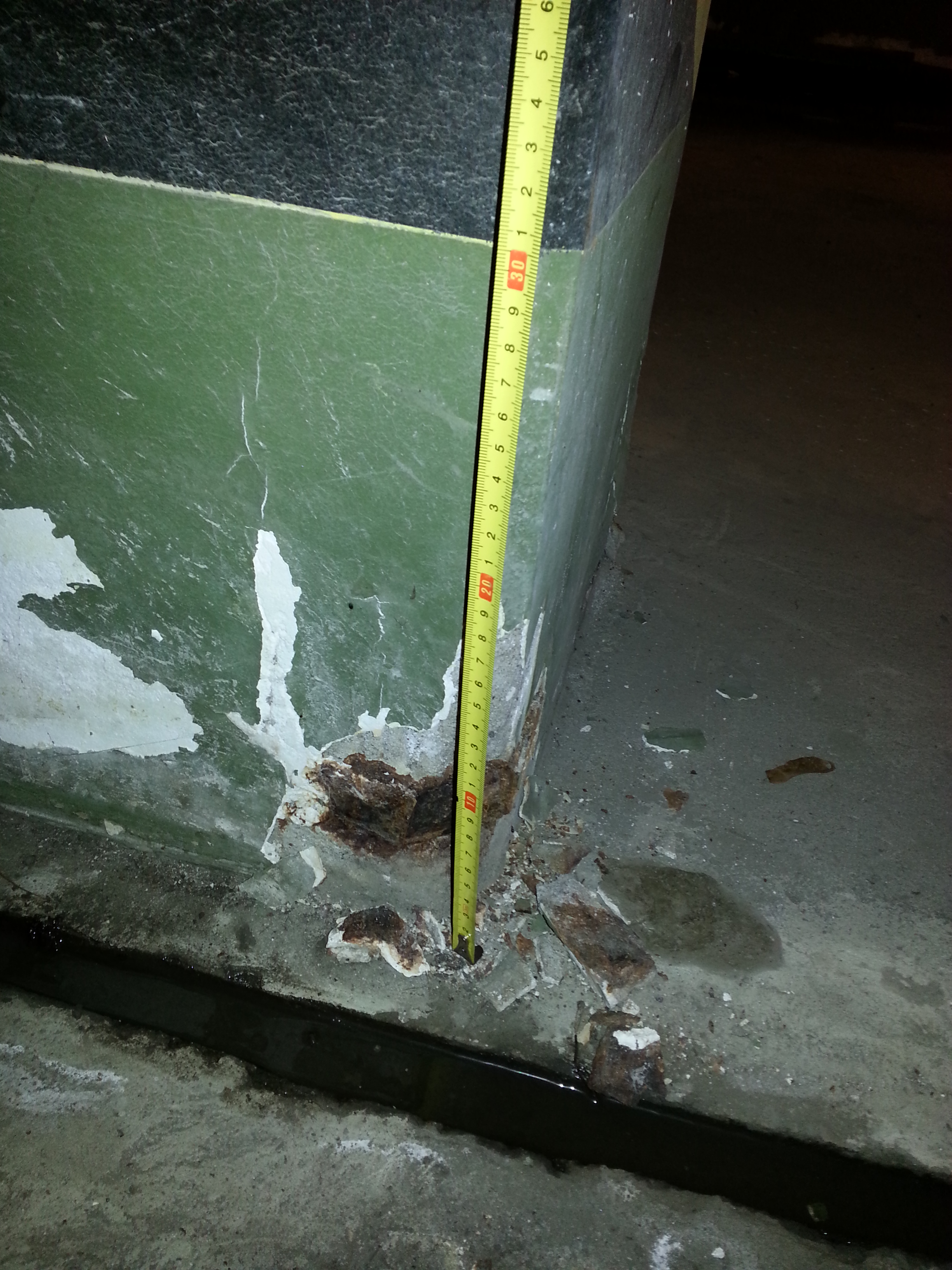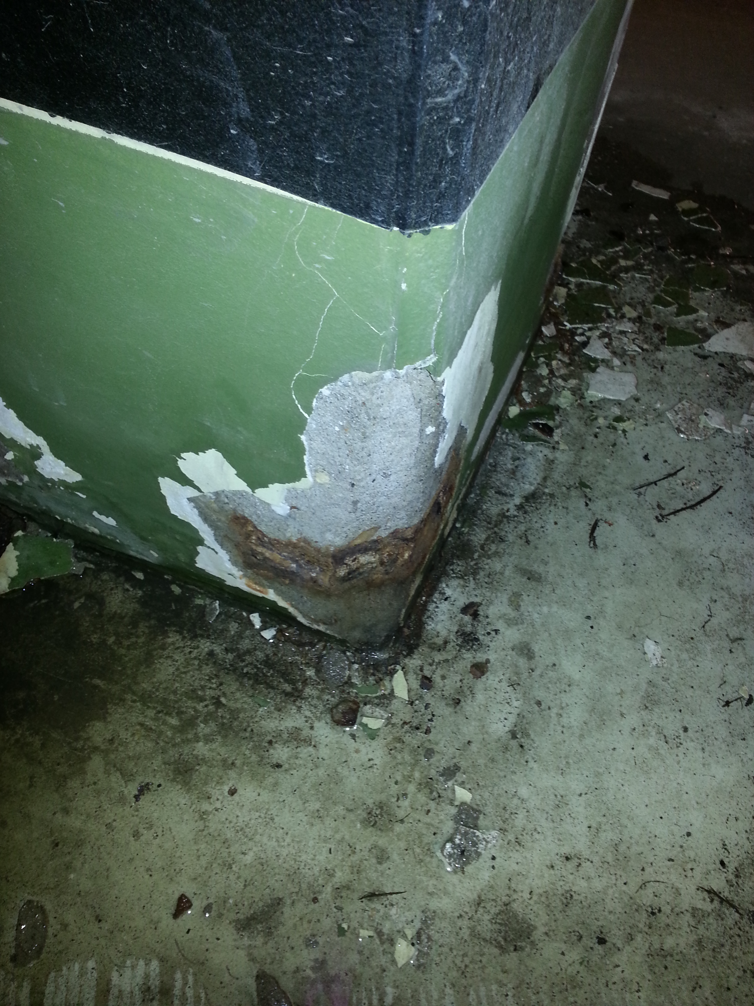 Eemaldame lahti oleva krohvi ja petooni. Krundime armatuuri ja muud metall pinnad kui on. Krohvime pahteldame pinnad ja kuni 1,5 m kürguseni uus värv. Ei oma tähtsust võime osta materjali Langeproonist.