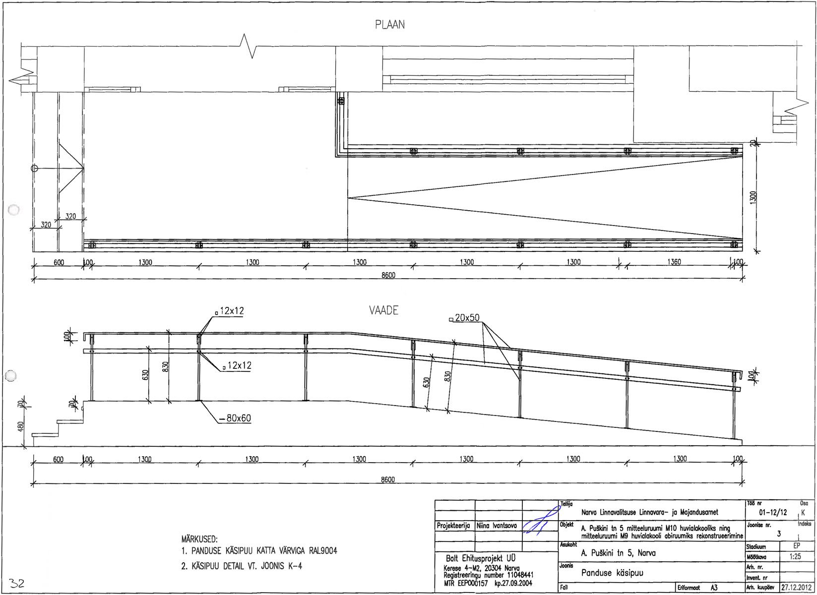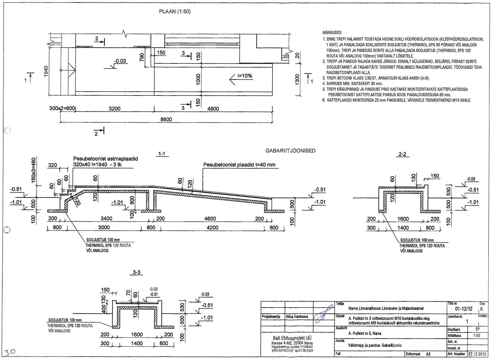 raudbetoonist vastavalt projektile. Olemasoleva välistreppi demonteerimine.Raudbetoonist, krohvitud, värvitud.