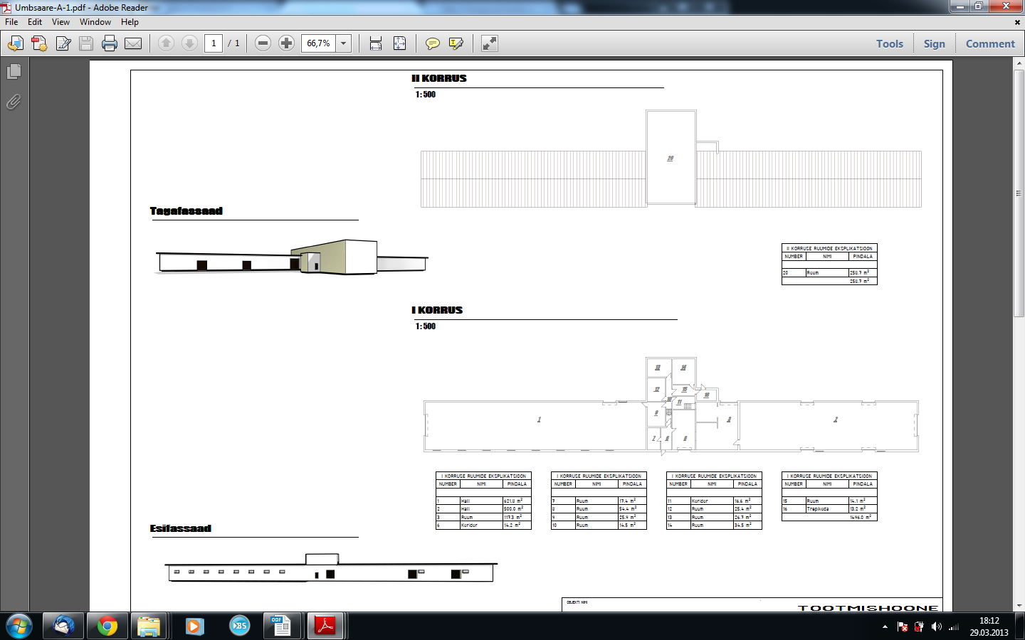 Olemasolevast hoonest on alles ainult põhikonstruktsioonid. Töömaht on järgmine: 1. Ühe väliseina uuesti ladumine(toestussein vana seina kõrvale). Uus sein soovitavalt laduda Fibo kergplokist, seina kõrgus 5,4m, seina pikkus 75m.