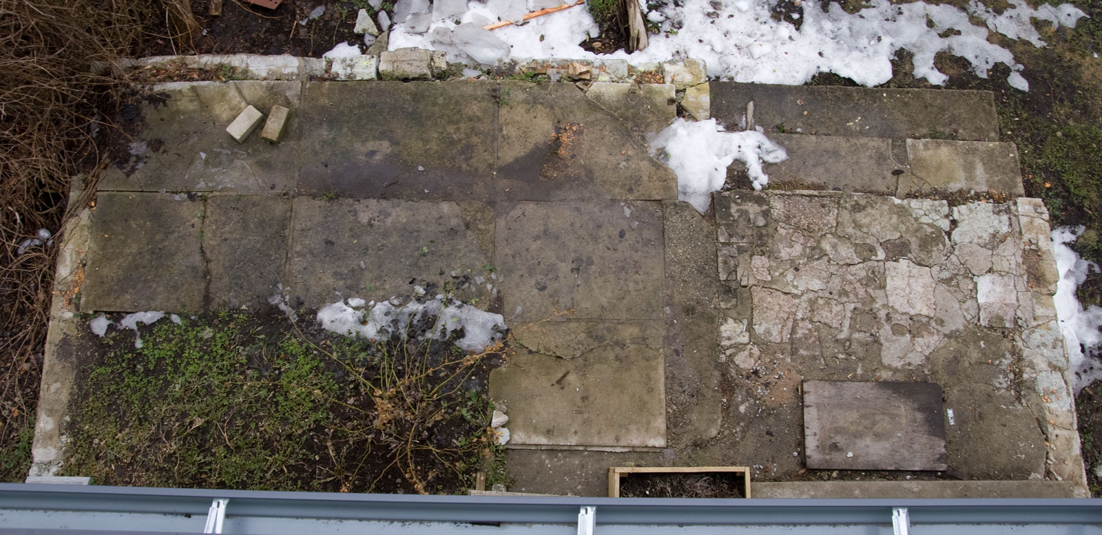 Uus terrass: kõrgus kuni 40 cm; katteks vabakujulised paekiviplaadid; ilma piirdeta. Astmed aia suunas ja välisukseni.