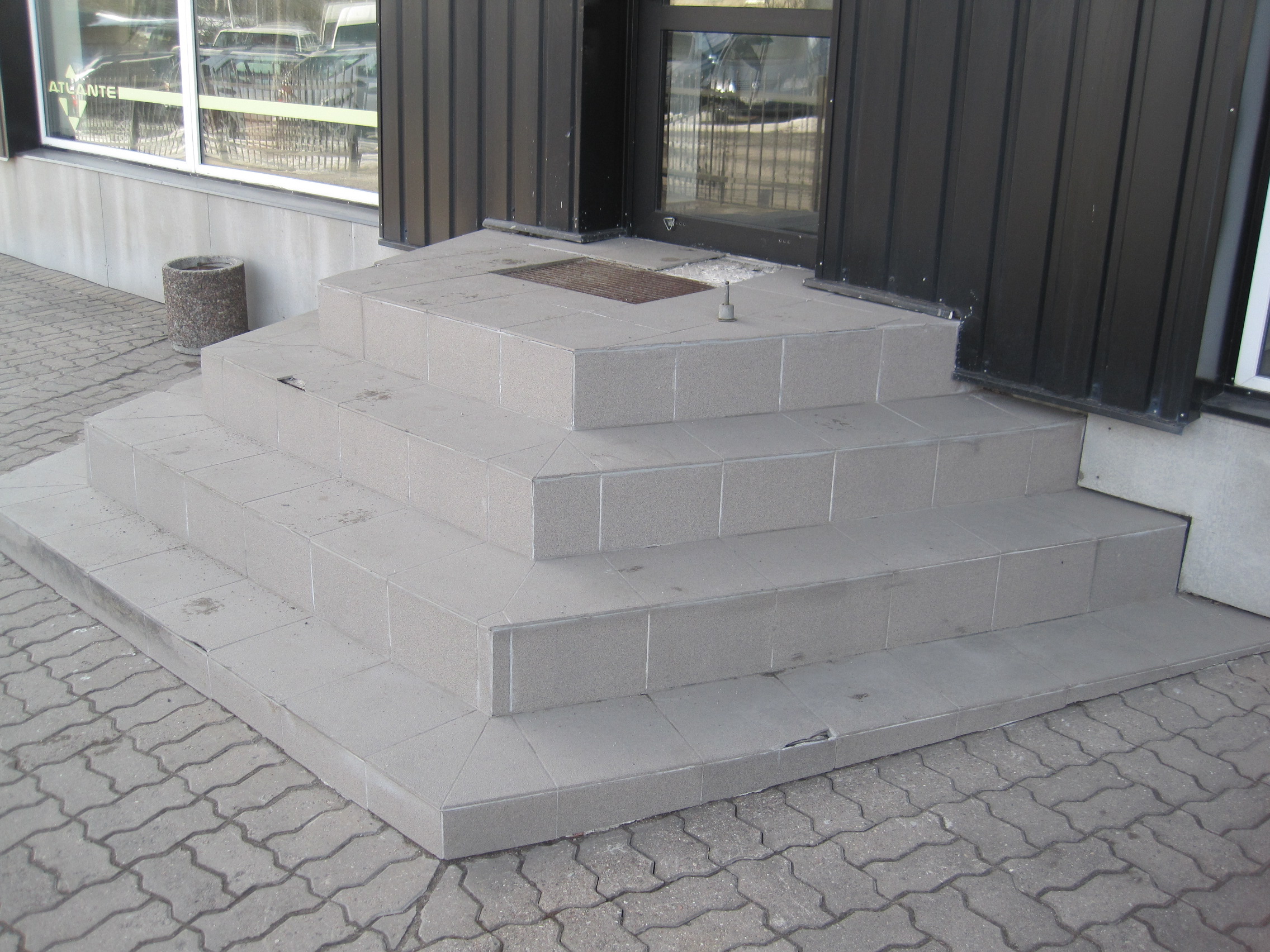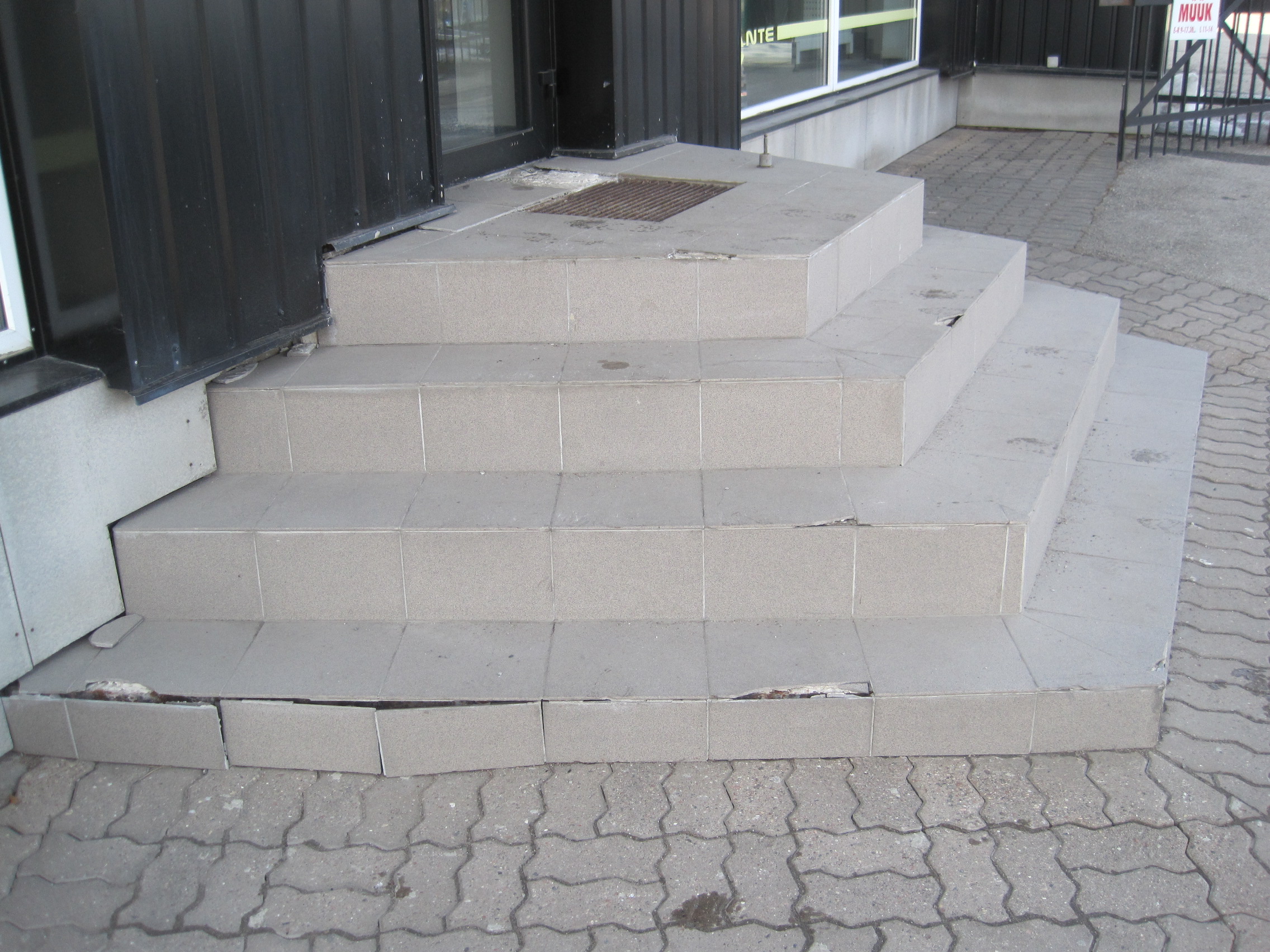 Nähtavasti oleks mõtekas trepp teha madalamaks ja katta uue kihiga millel oleks libisemiskindel kate.