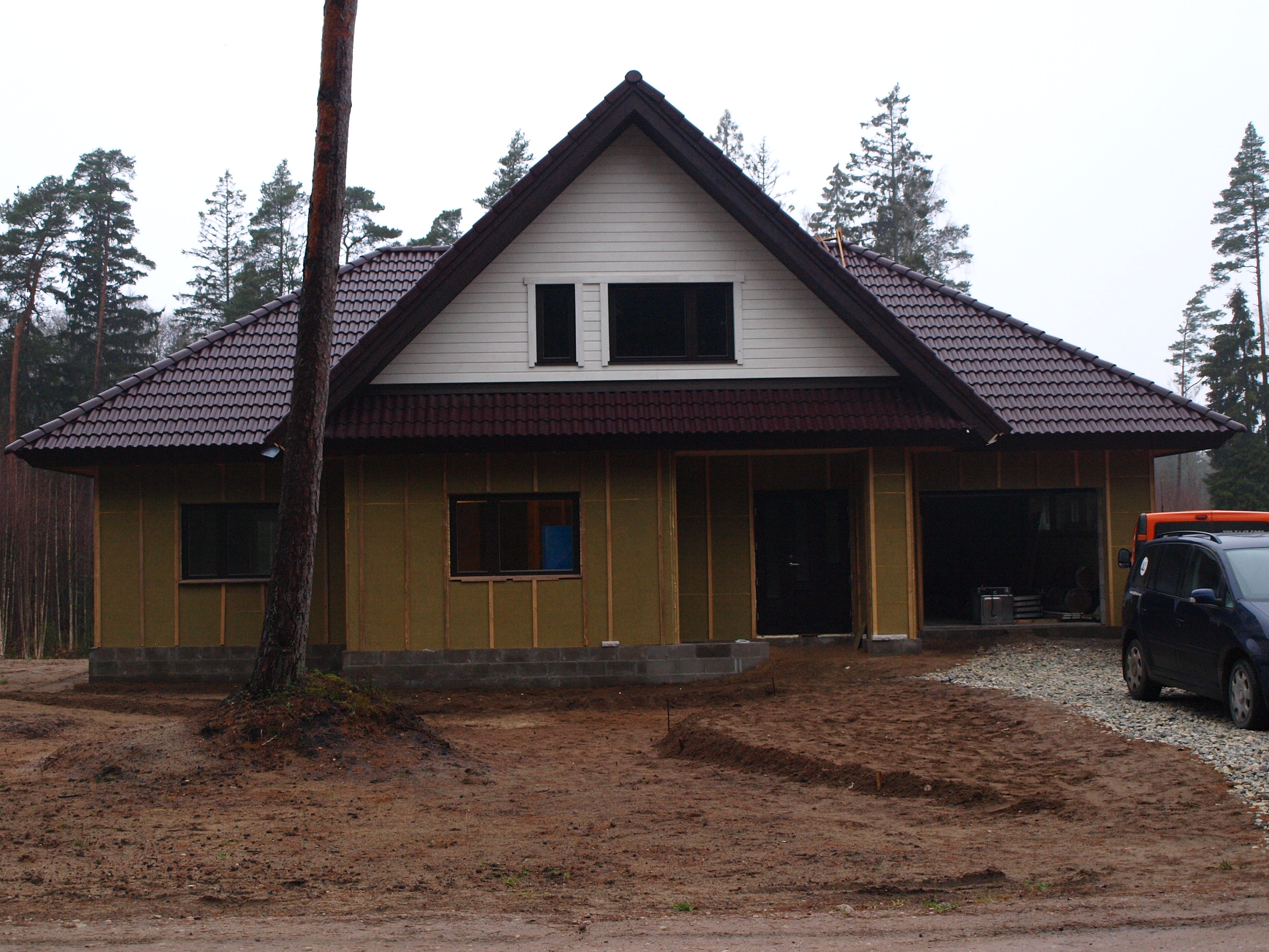 Eramaja fassaadi ladumine klombitud silikaadiga, valge seguga. Avad ääristada samuti kiviga. Avade kohal ka kivi. Esimene korrus. Tööde algus esimesel võimalusel.
