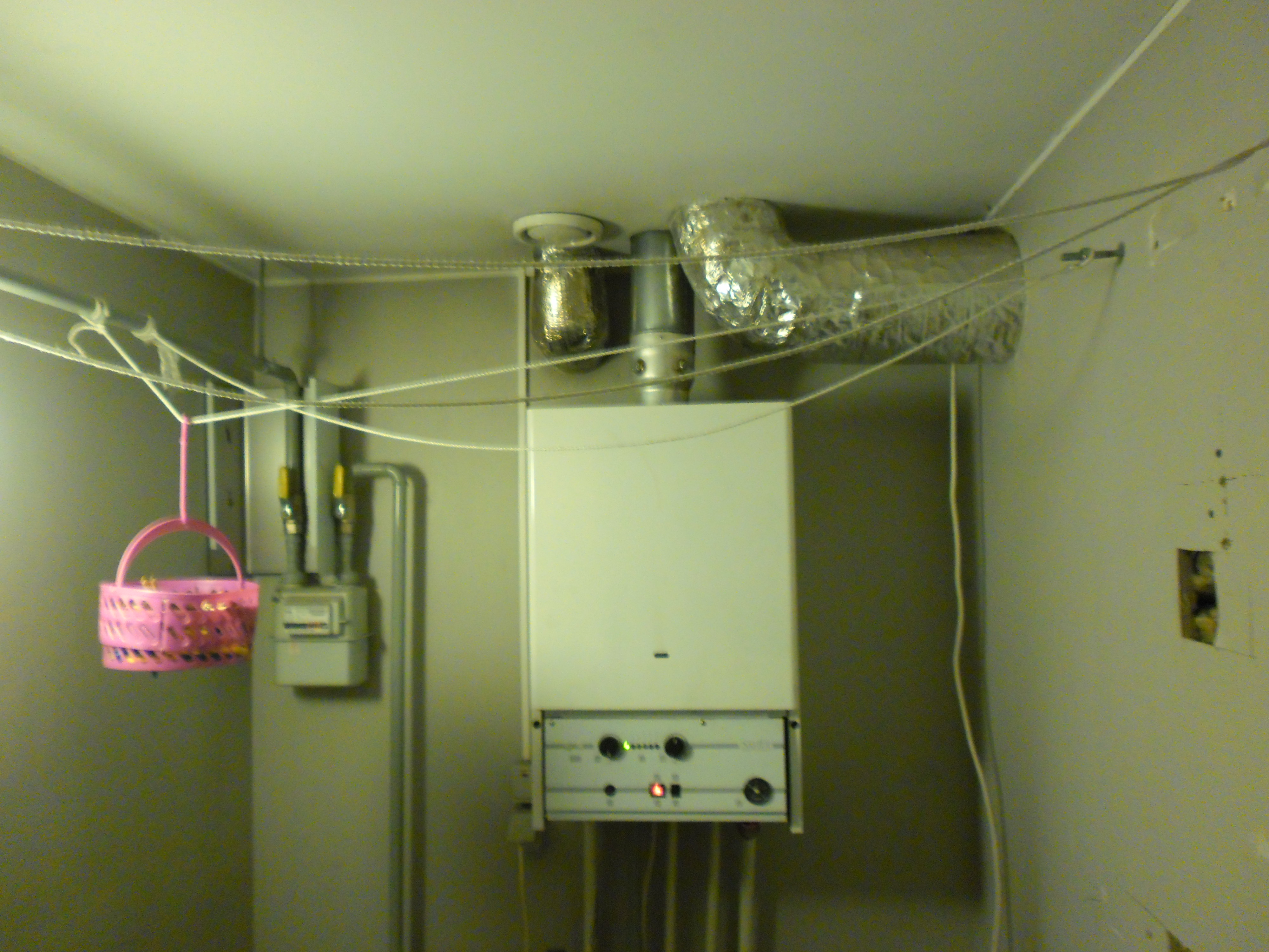 Gaasikatla vahetus ridamajas Tallinnas Kristiines. Köetav pind ca 130 m2, kortna pikkus 2 m, sooja vett vaid dushi all käimiseks vaja.