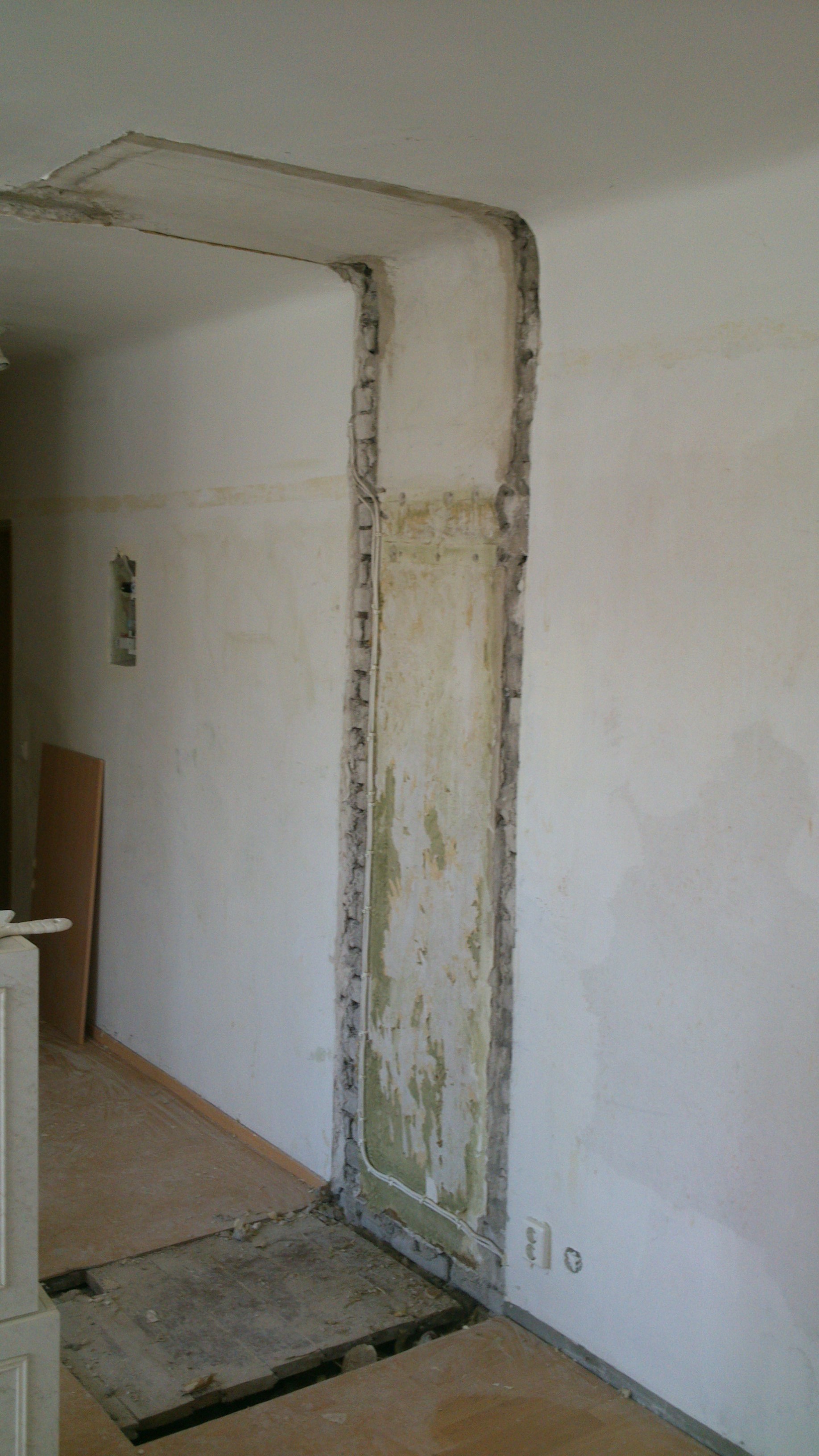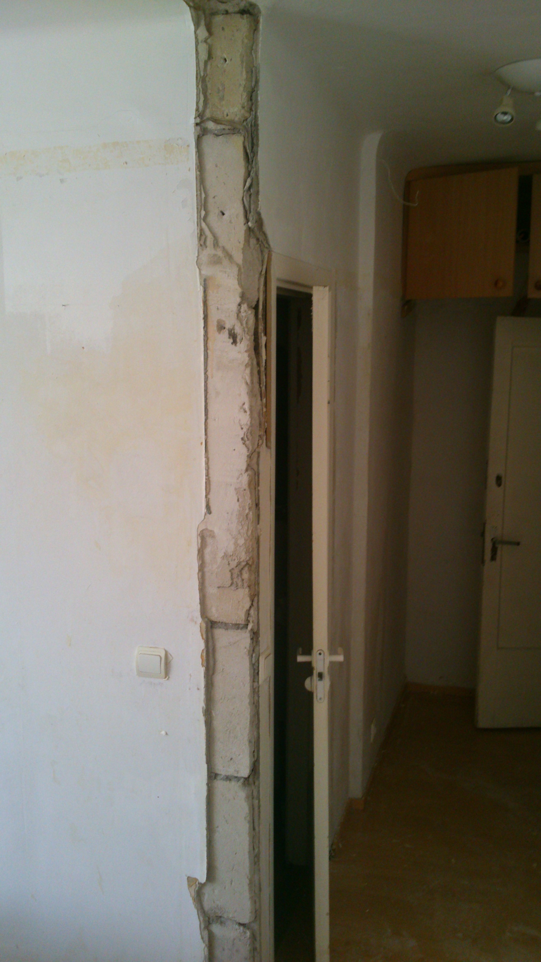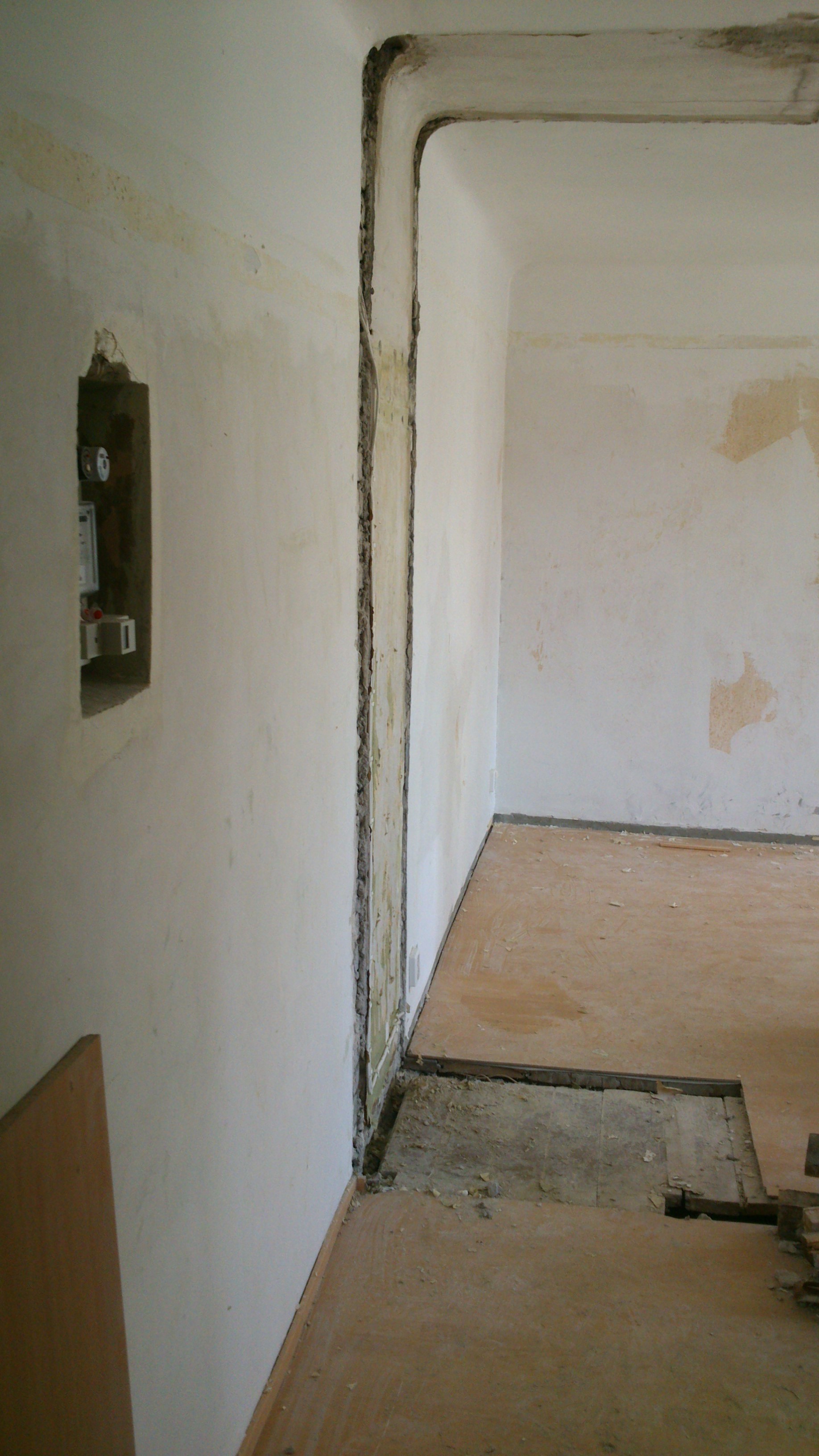 2) Pahteldada ja ajada sirgeks esiku seinad. Samuti vaja parandada nurk (vaata pilti). Kokku 3,4m
