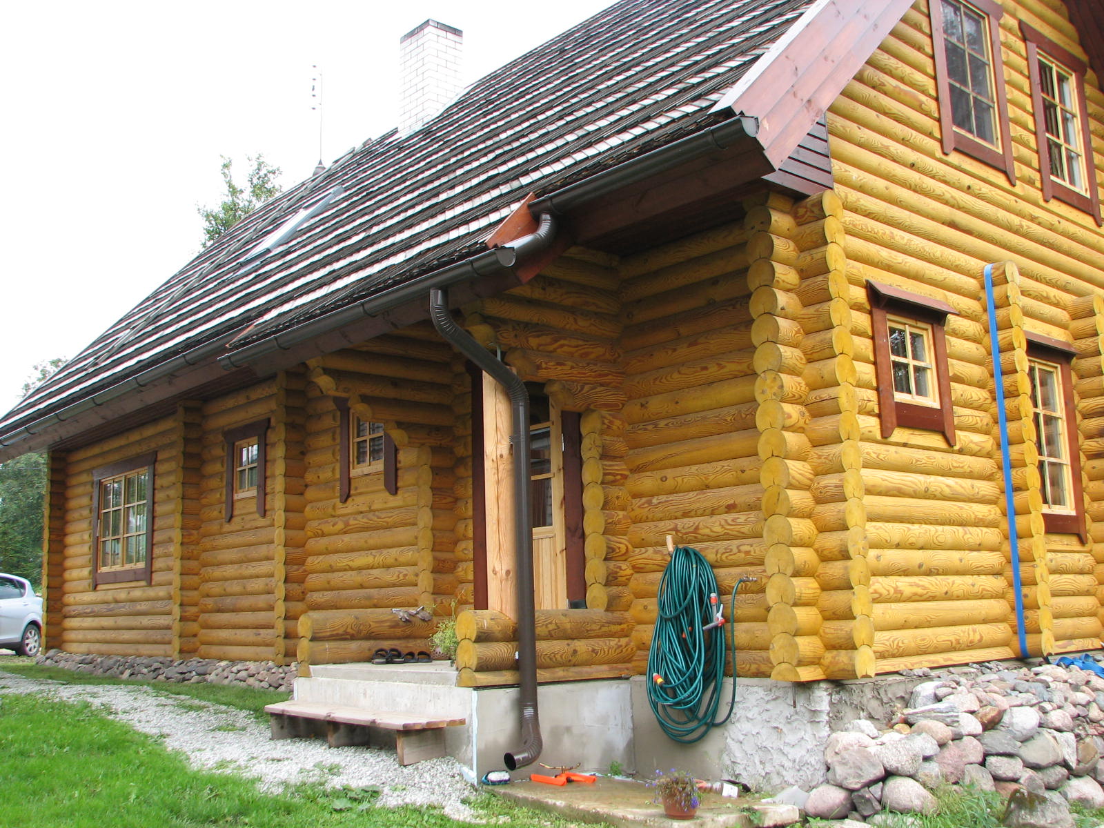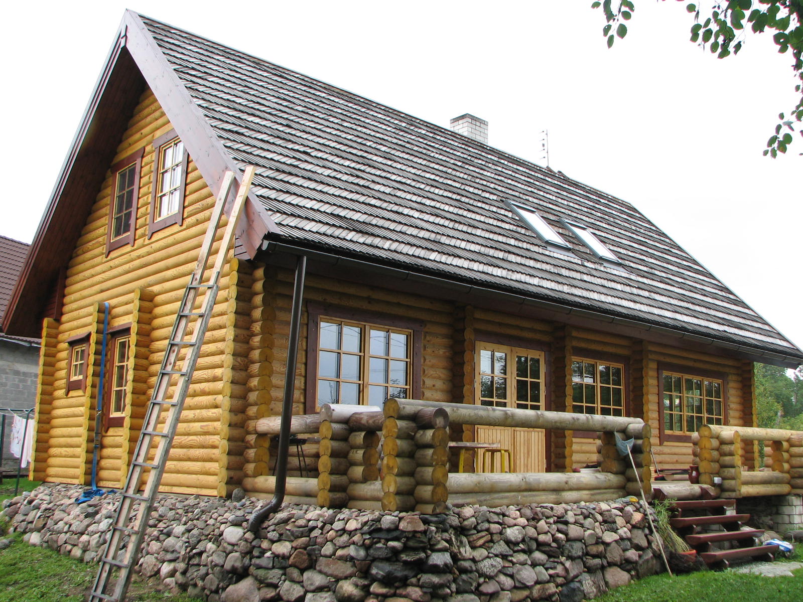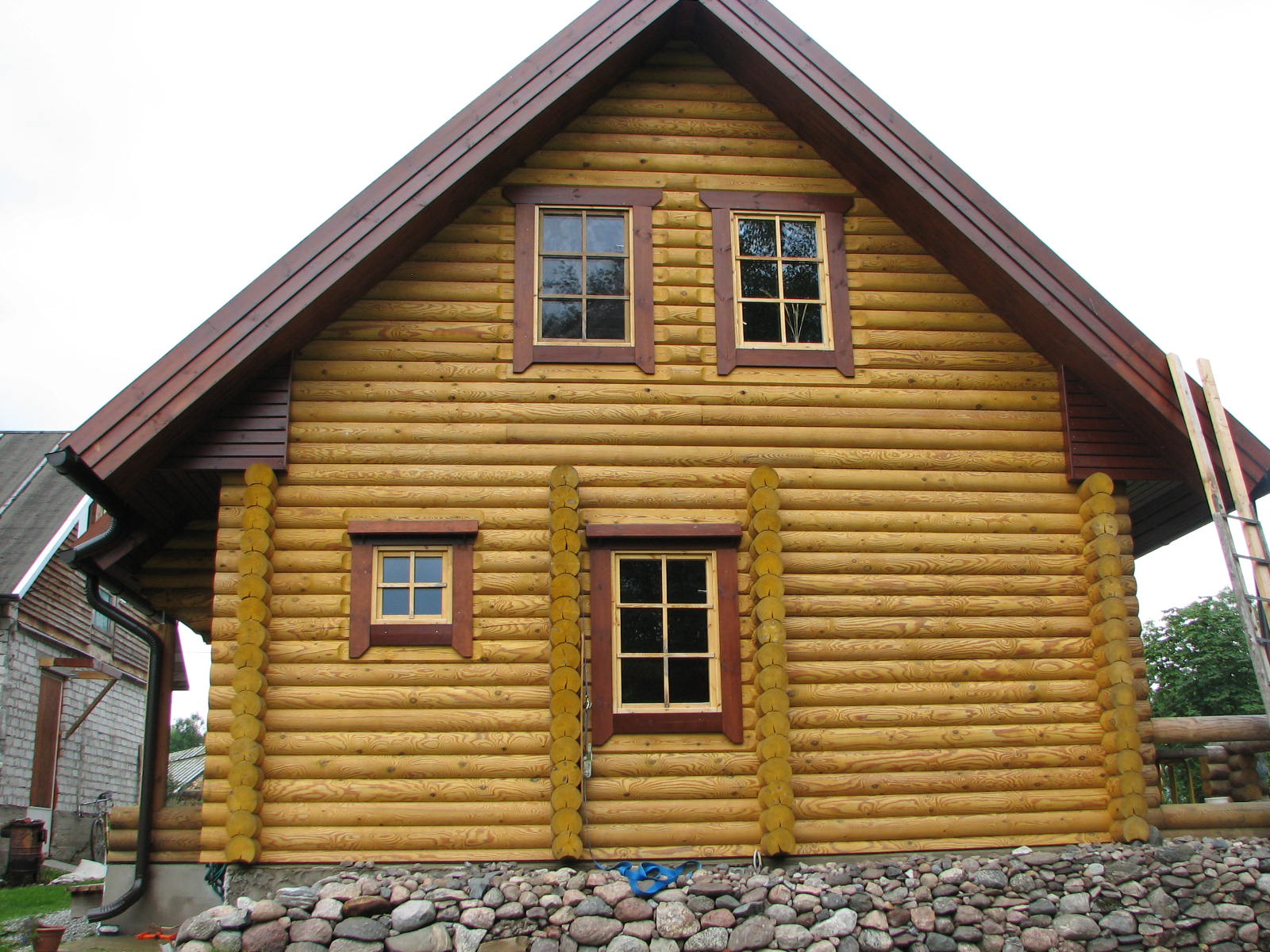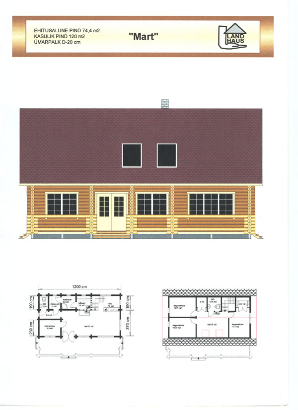 3) püstitab tellija poolt hangitud palkidest maja (Landhaus projekt Mart,nelikant palgist)