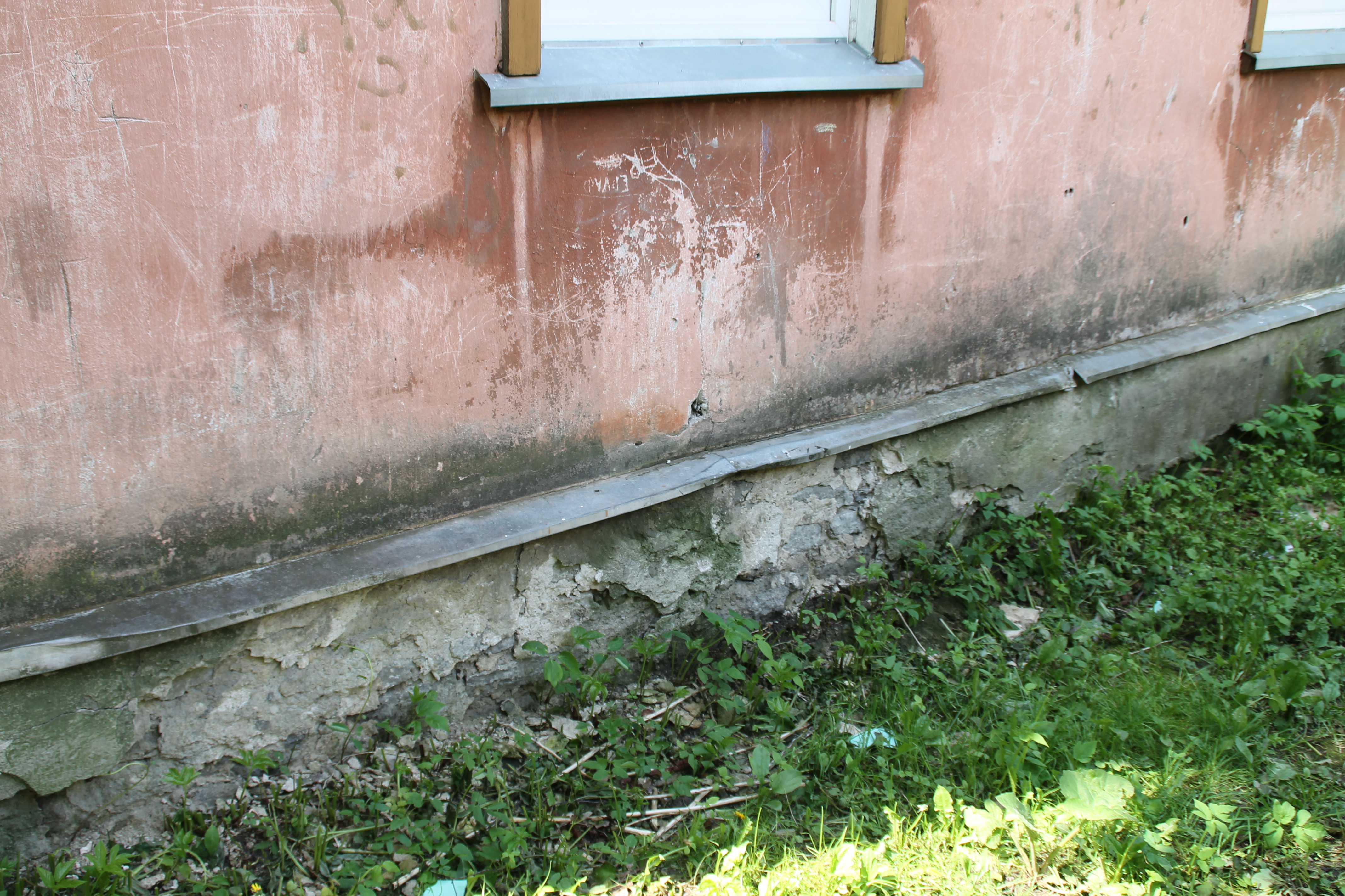 Fassaadilt vana krohvi ja soojustuse mmeladamine kuni kandvata konstruktsioonideni ~40cm ulatuses.