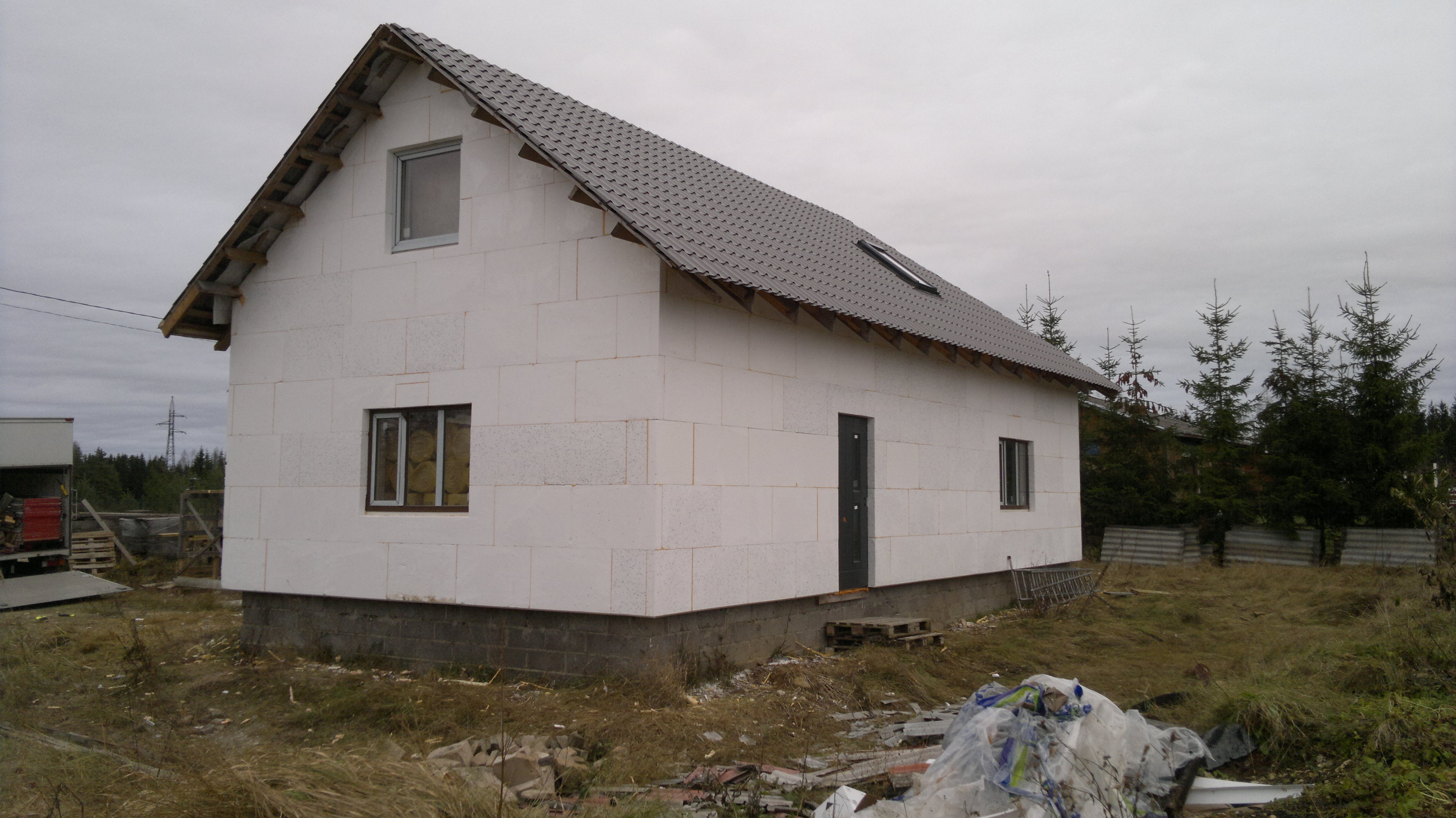 Penoplast seina pandud aga oleks nüüd tarvis kõigepealt armeerimiskrohv ja seejärel valge Mira 2mm teraga krohv sinna peale veel.