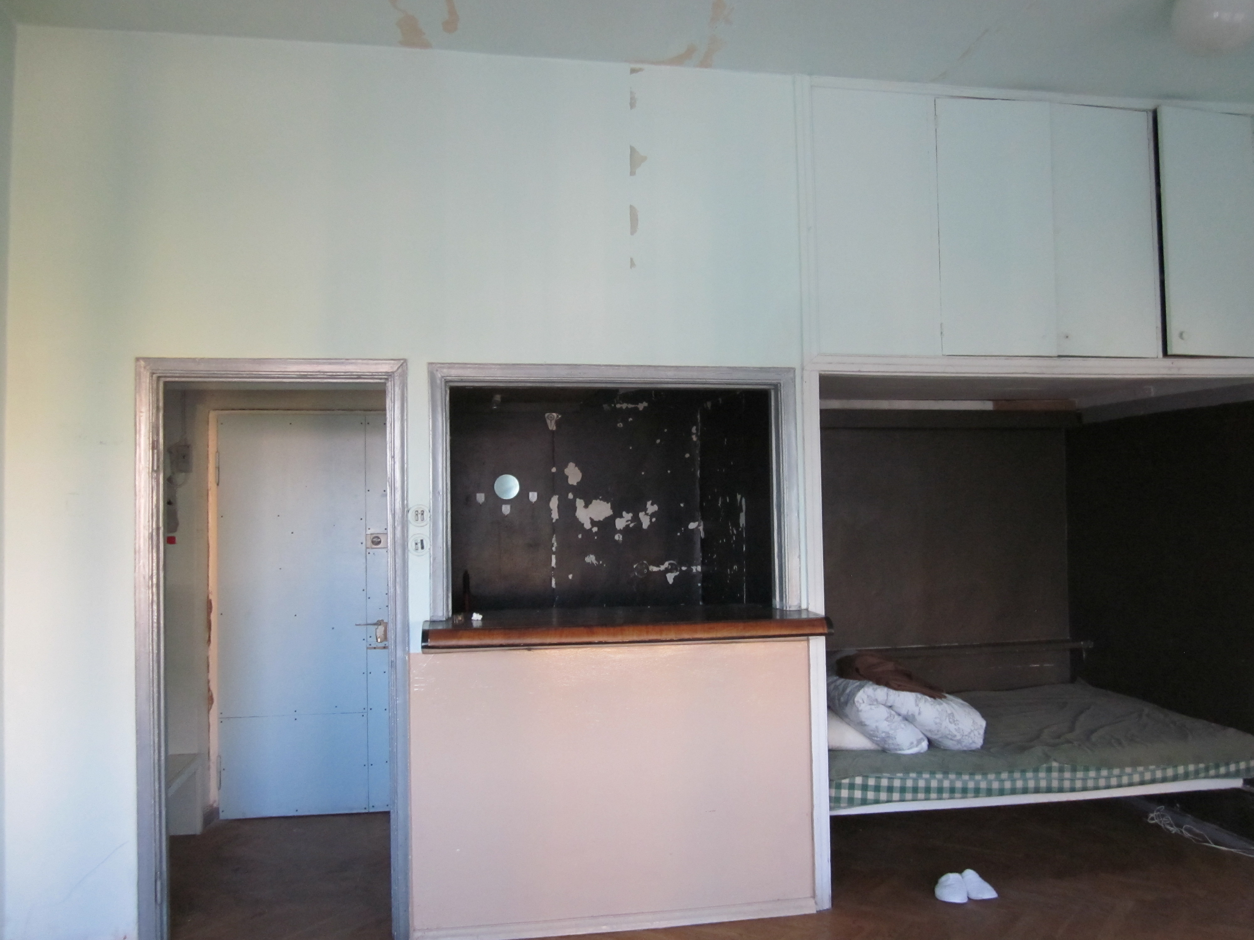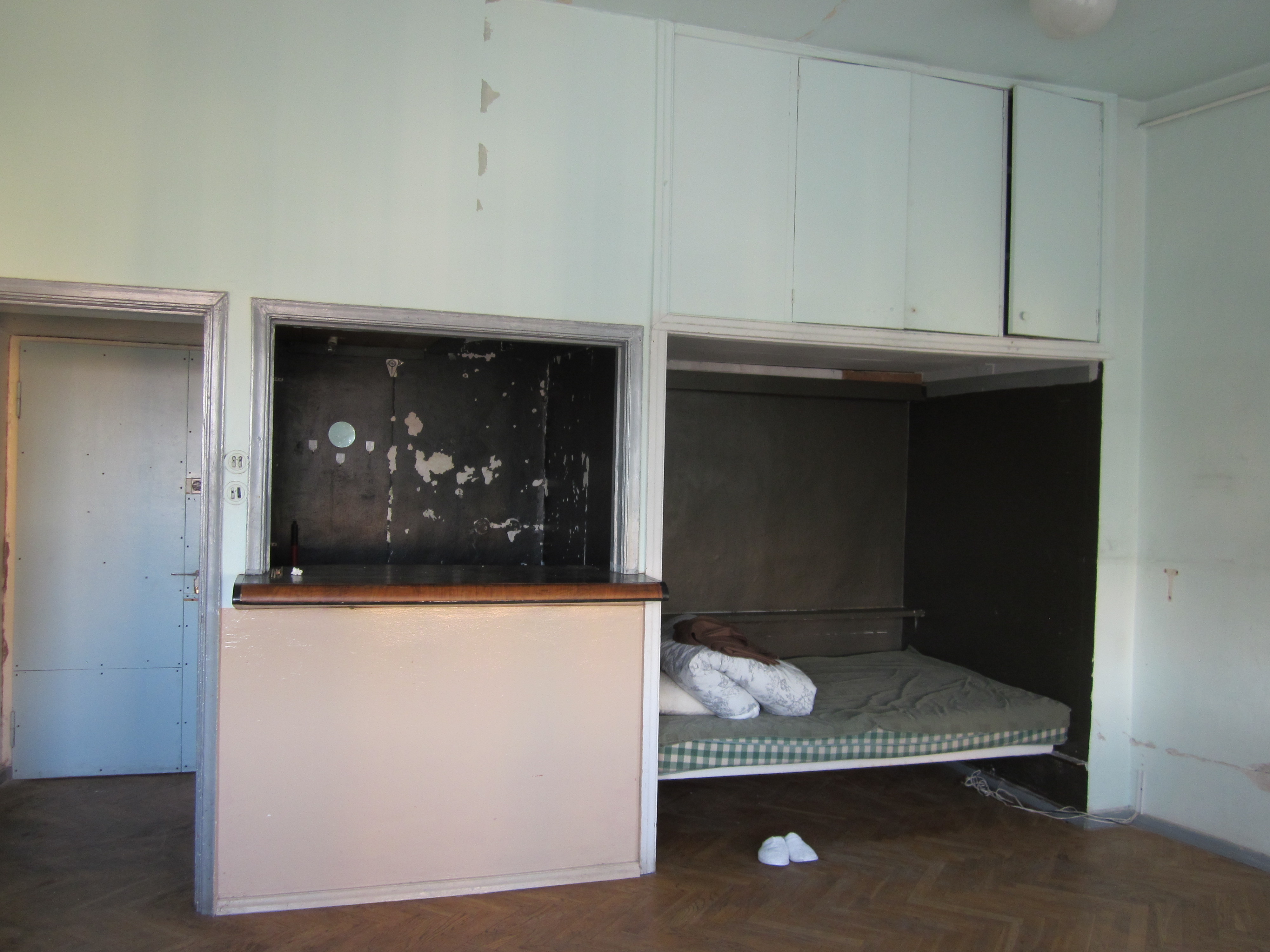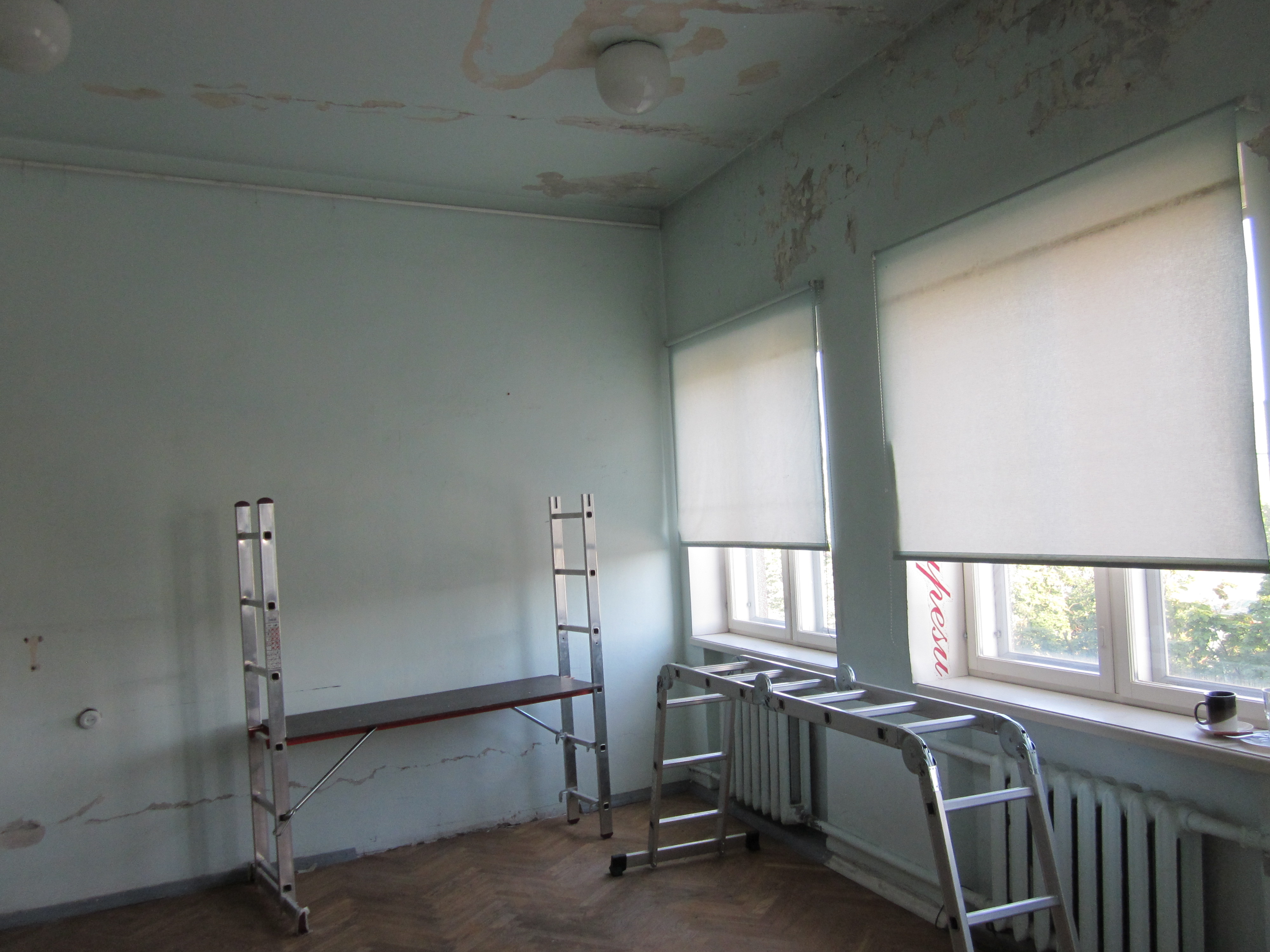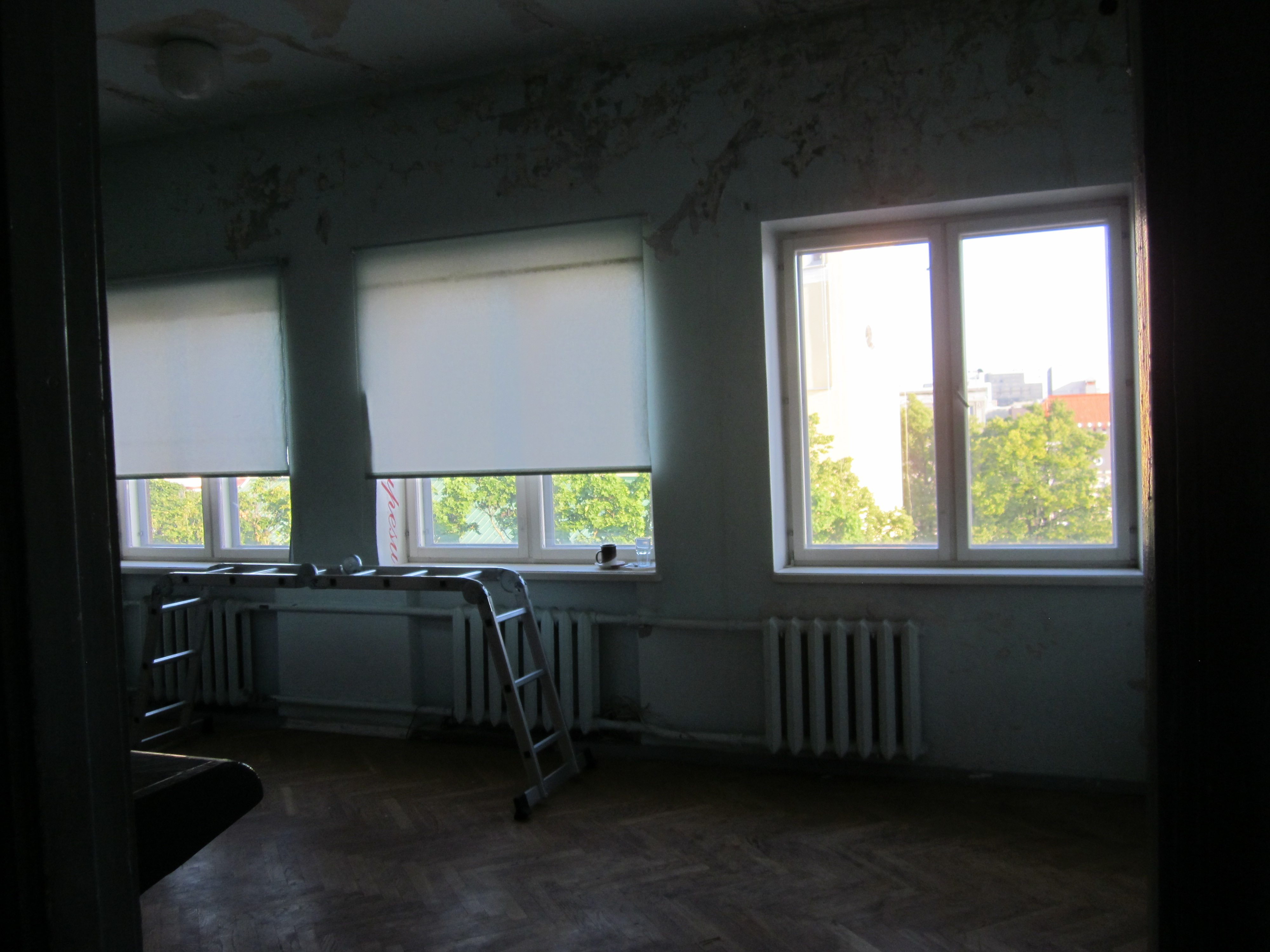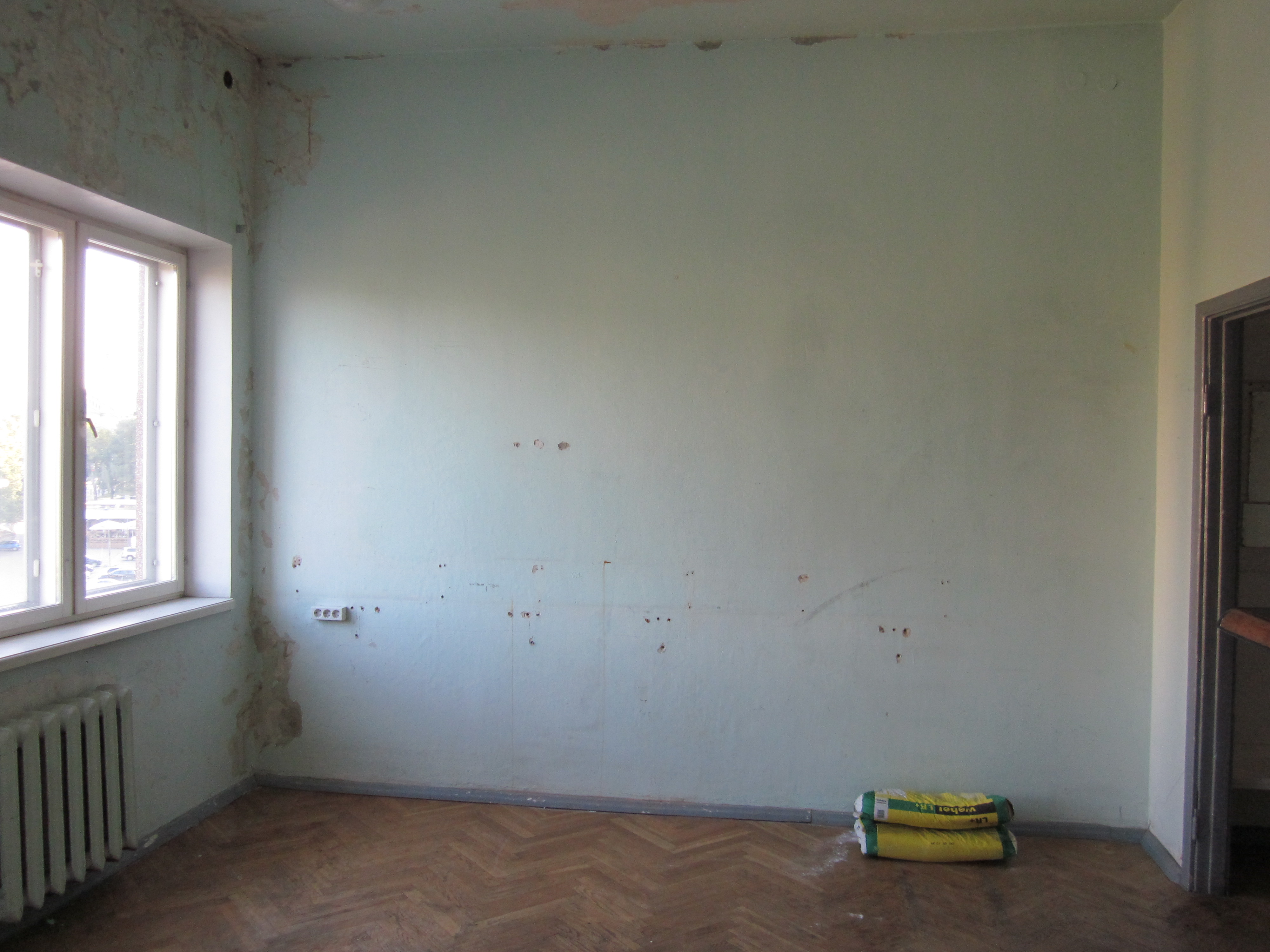 Ruumi põrandapind on 28 ruutmeetrit, lagede kõrgus 2,8 meetrit, ühes seinas suur aken. Vaja oleks seinad pahteldada ja värvida, osaliselt ka lammutada seesolev kapp, ja olemasolevate torude juurde paigaldada kraanikauss.