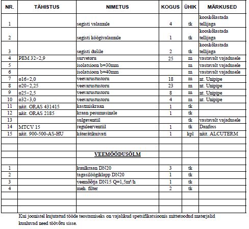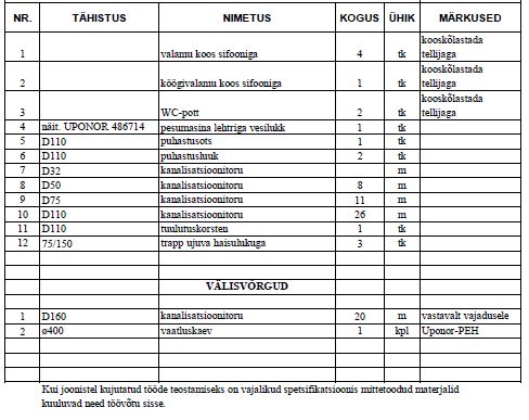 | Ehitusmaterjalid: | Töö tellija poolt |