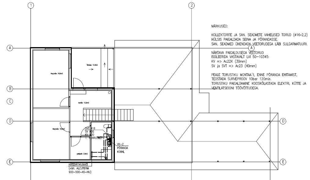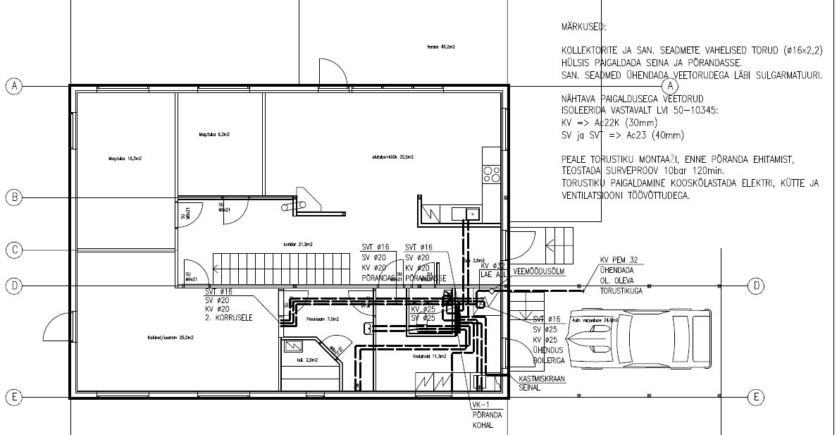 Eramu vee- ja kanalisatsioonitorude paigaldus hoone sees vastavalt projektile.