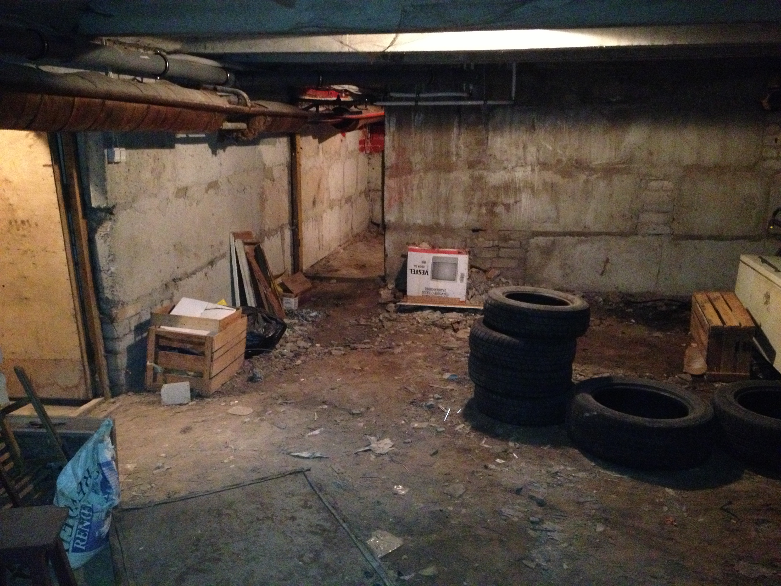 Keldris kaks ruumi. Suurem ruum on ~57,6 m2 ja väiksem ruum ~17,4 m2. Mõlemas ruumis oleks tarvis mullakiht välja vedada, sinna piisav kiht täidet alla panna ja peale 7-10 cm paksune põrand valada.