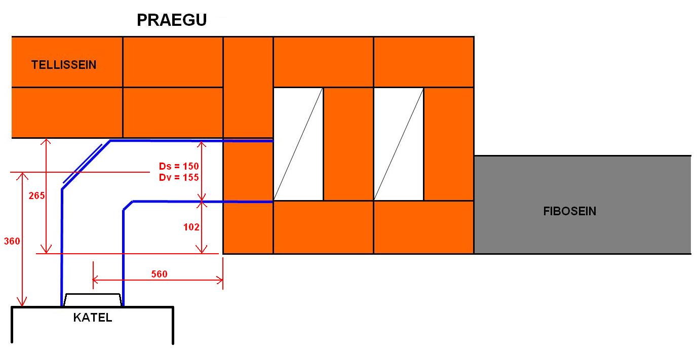 Telliskorstna 1- kivi lõõri ovaalsest happekindlast metalltorust hülsskorsna paigaldus, lisaks slepe ning 2 kattega korstnamütsi.