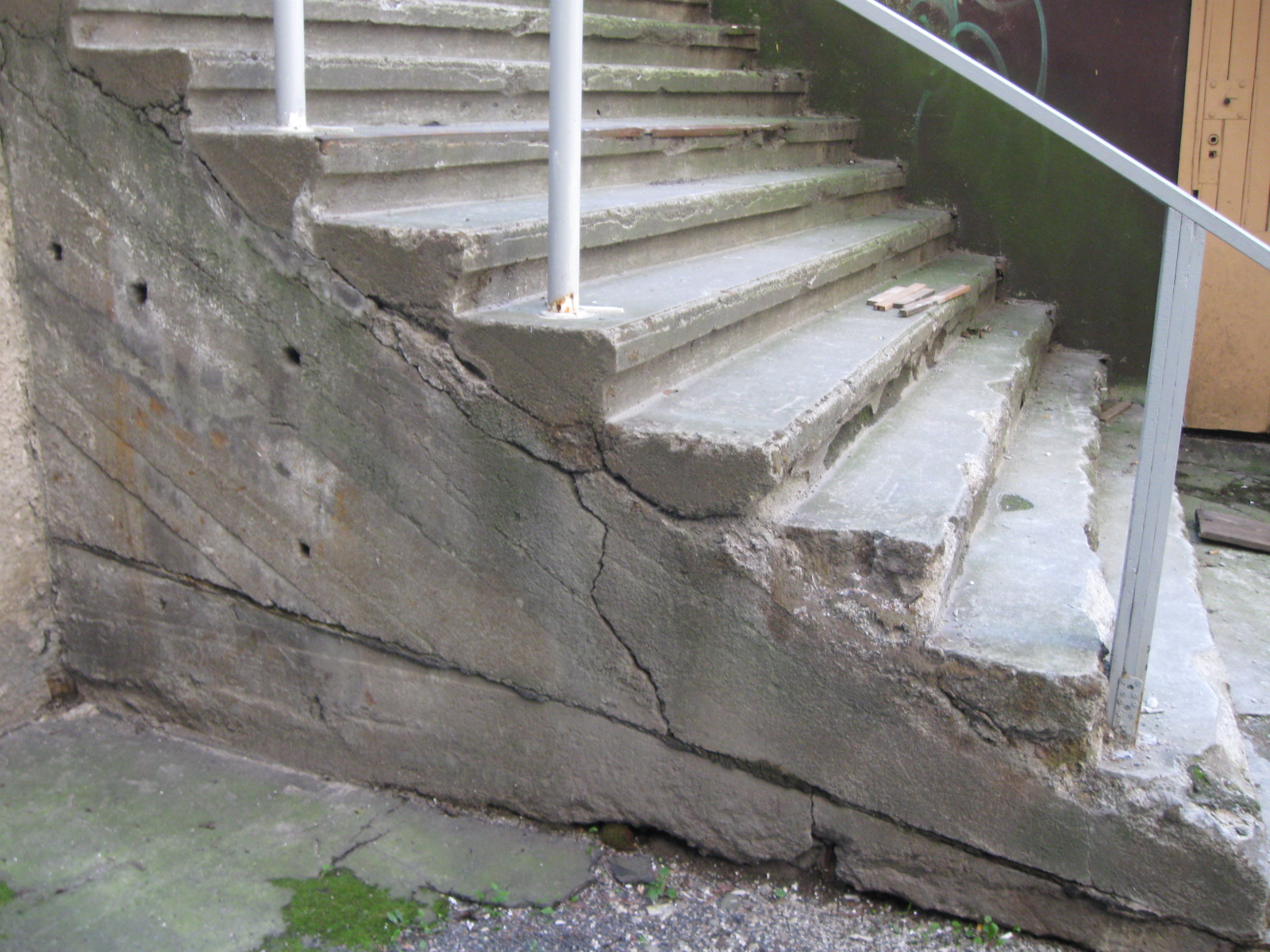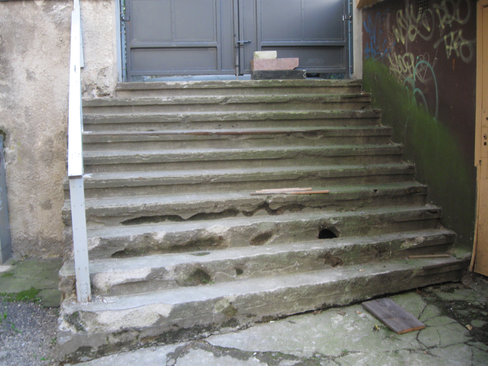 Remonti vajab trepp,mille astmete esikülg on kulunud ja vigastada saanud.
