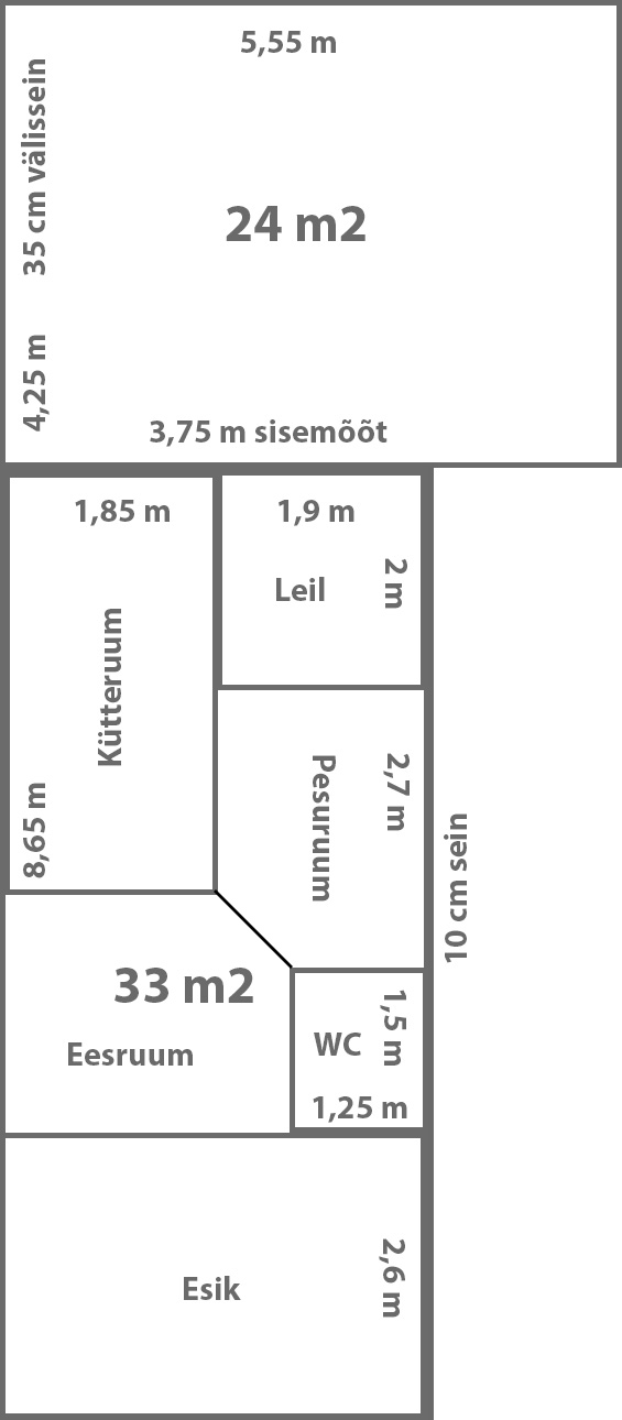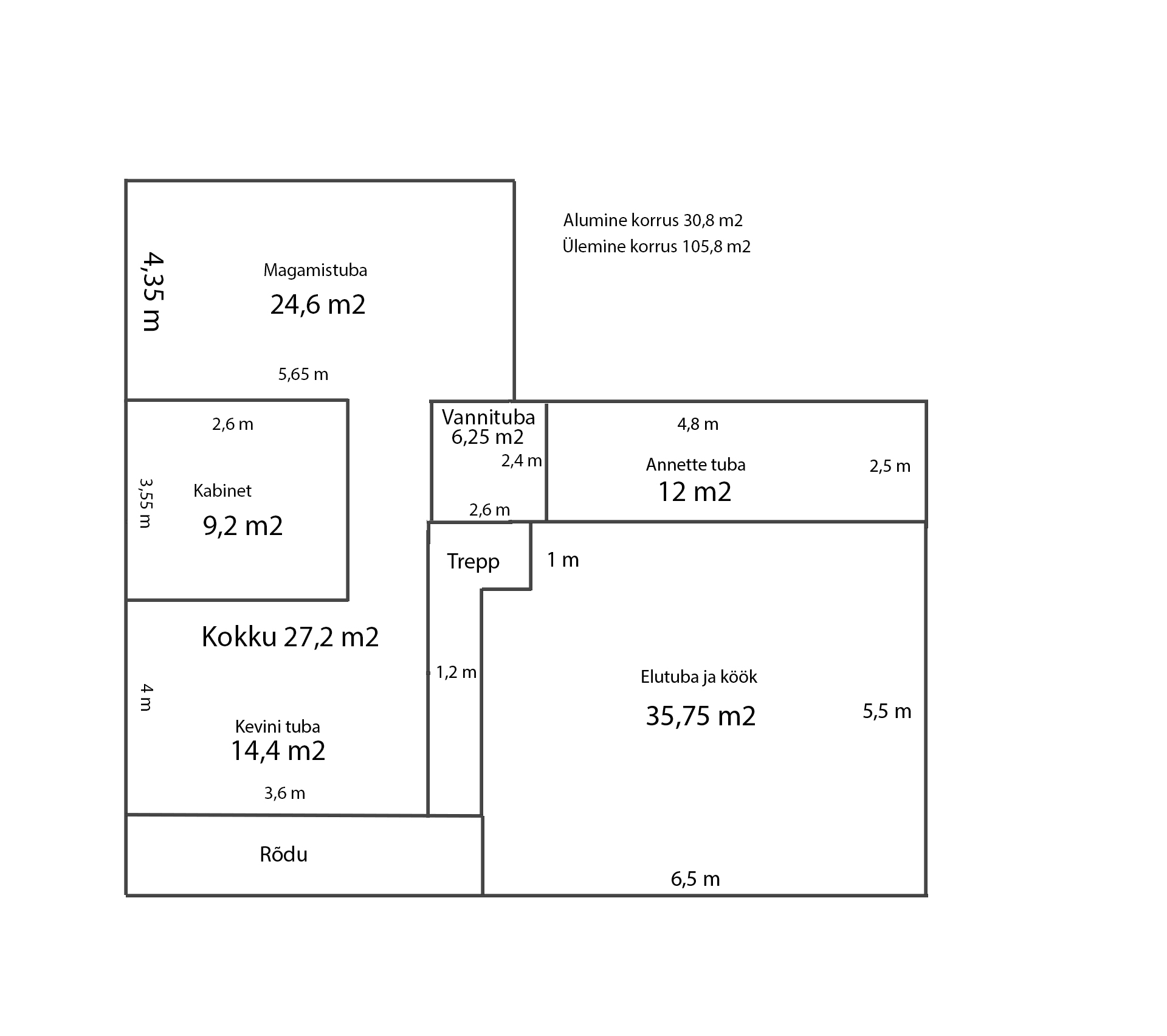 Esimesel korrusel 31 m2 betoonis põrandakütte toru (torud veetud)