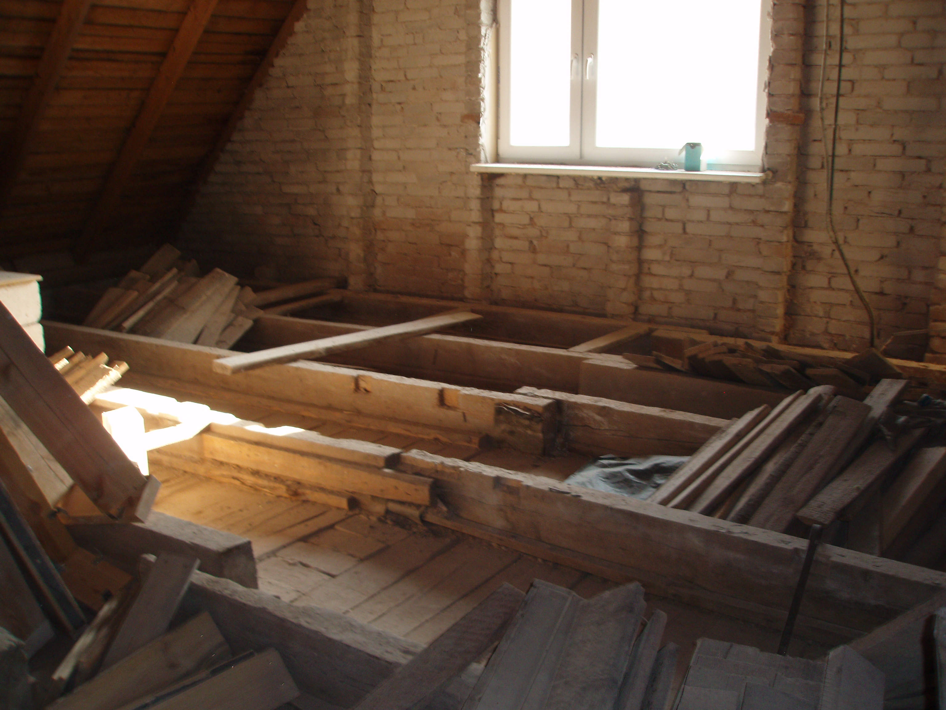 Põrandapinda 105 m2, sellest 36m2 on vana ehitise osa, st vajalik põrandate sirgu ajamine prussidega keskelt äärtesse ja seejärel laudise paigaldamine. Esimeselt korruselt lakke plaatide paigaldamine (kips + saunaruumidele sobiv laeplaat).