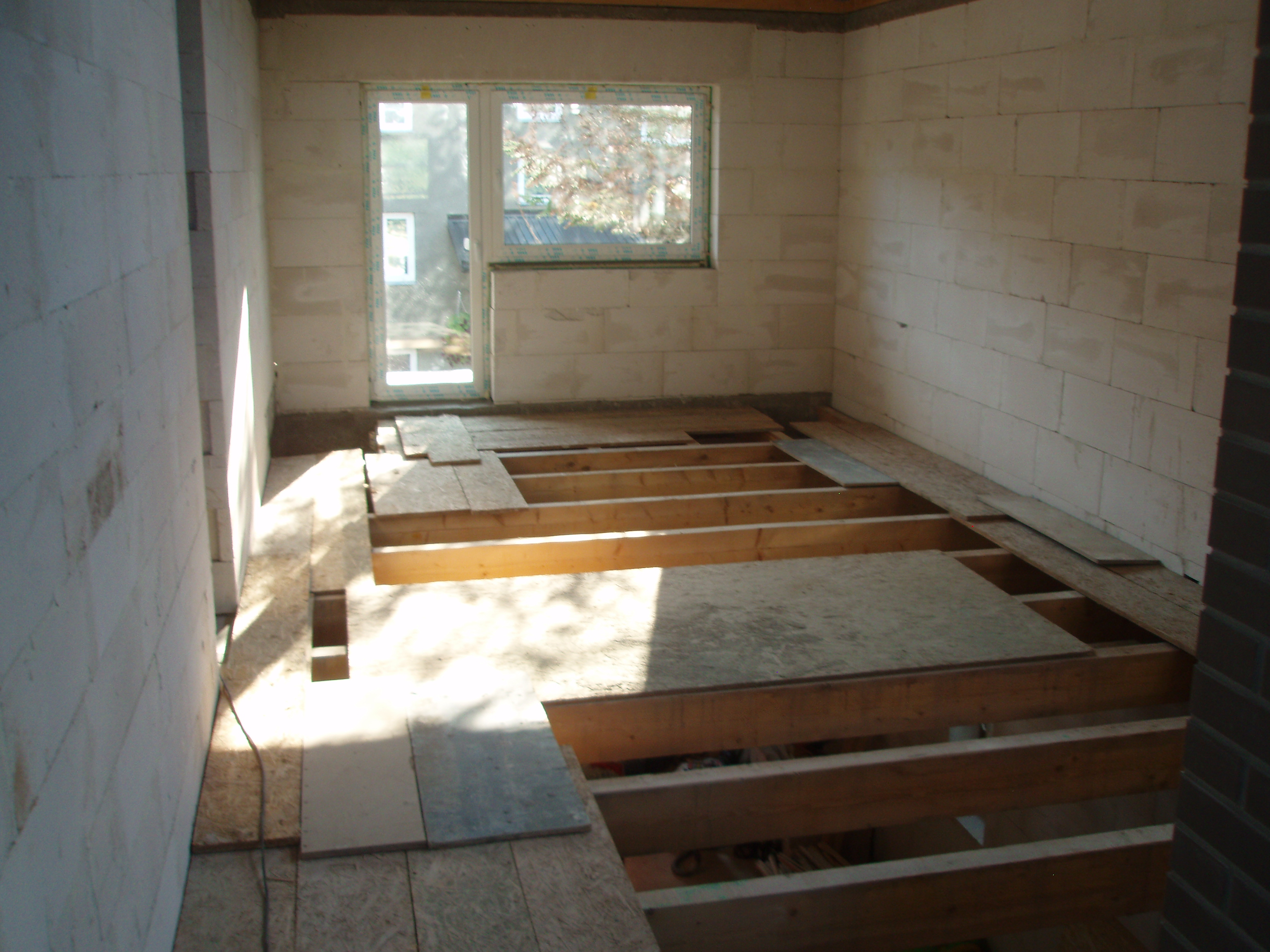 Laudis karkassi paigaldus. Soojustuse (vill) laiali laotamine. Põranda ettevalmistus vesipõrandakütte paigaldamise tarbeks (Uponor soojusjaotusplaadi jaoks).