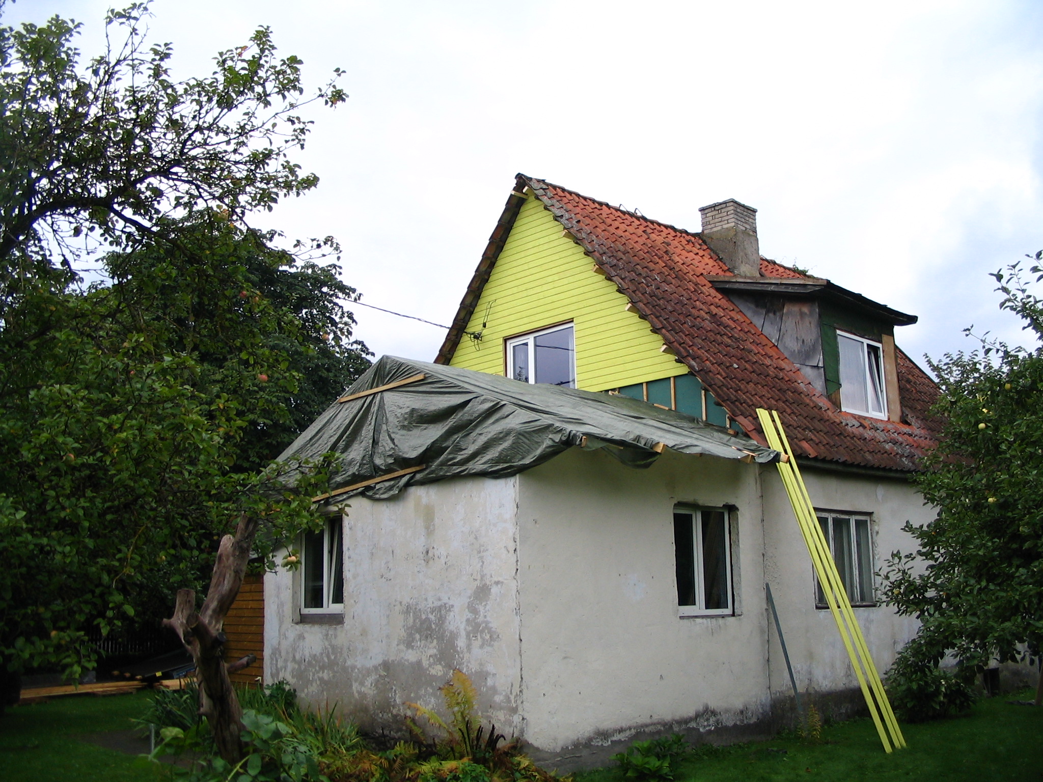 Vaja oleks vana maha ja uus asemele ehitada.Kuna vana katus mingid aastad tagasi läbi lasknud,ja eelmisel aastal sai vahetatud aken,siis selgus,et ka vintskapi talad läbi.10*10 püsti prussid nurkades.Seega tuleks koos katuse osaga maha võtta ja uus ehitada sama suur,kui olemasolev.Katusele tuleb plekk,väljast voodrilauaga,all tuuletõkkeplaat j.n.e.Põhimõtteliselt siis karkass.Seestpoolt viimistleda pole vaja,ainult vill vahele esialgu.Hiljem mõtlen,millest seestpoolt teeb.Materjalid hangin ise,kuna osa materjali olemas.(Prusse,värvitud tuulekastilauad,värvitud voodrilauad j.n.e.Lisatud piltidel näha milline on vintskap ja milline tuleb plekk ja vooder.
