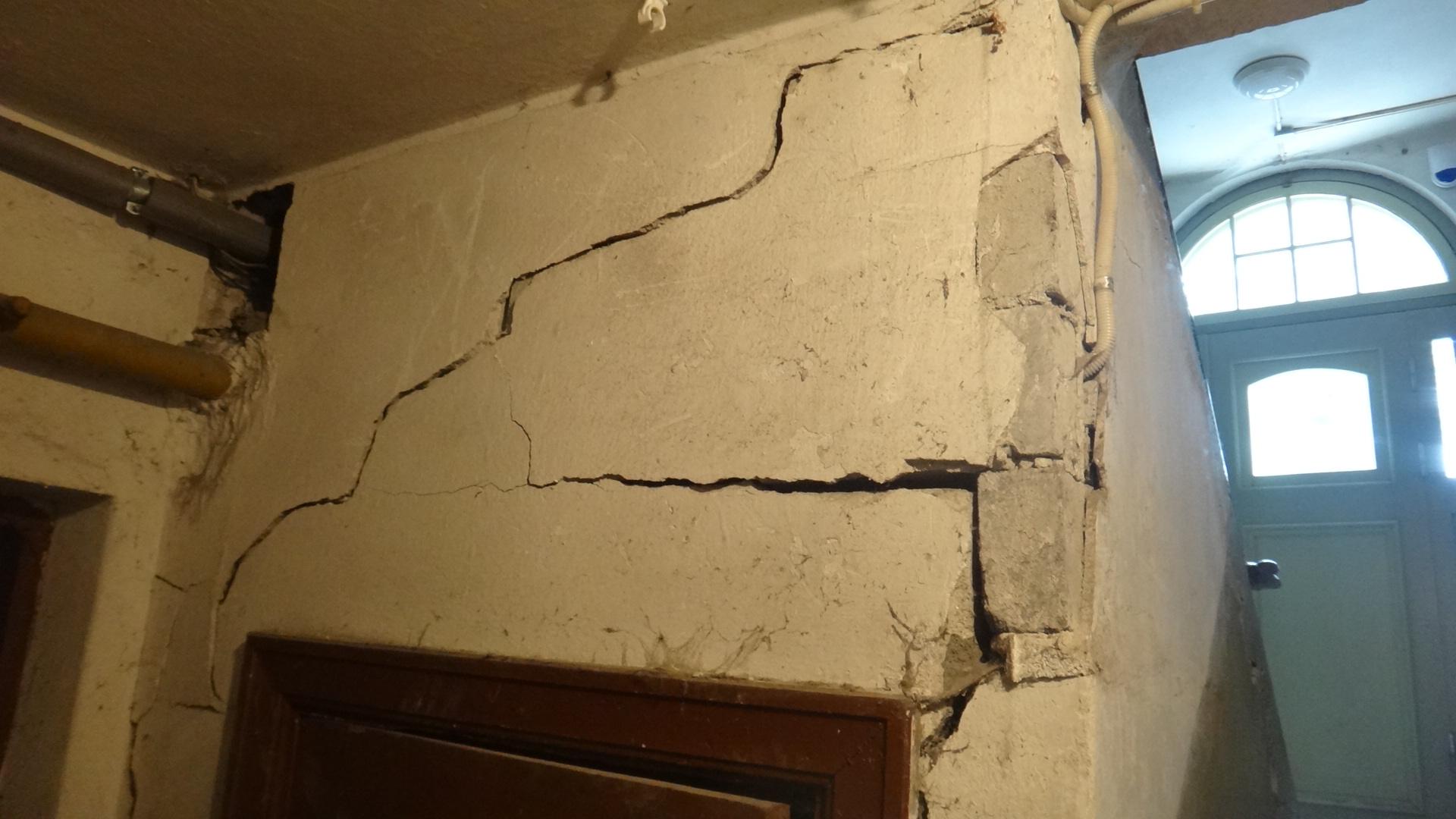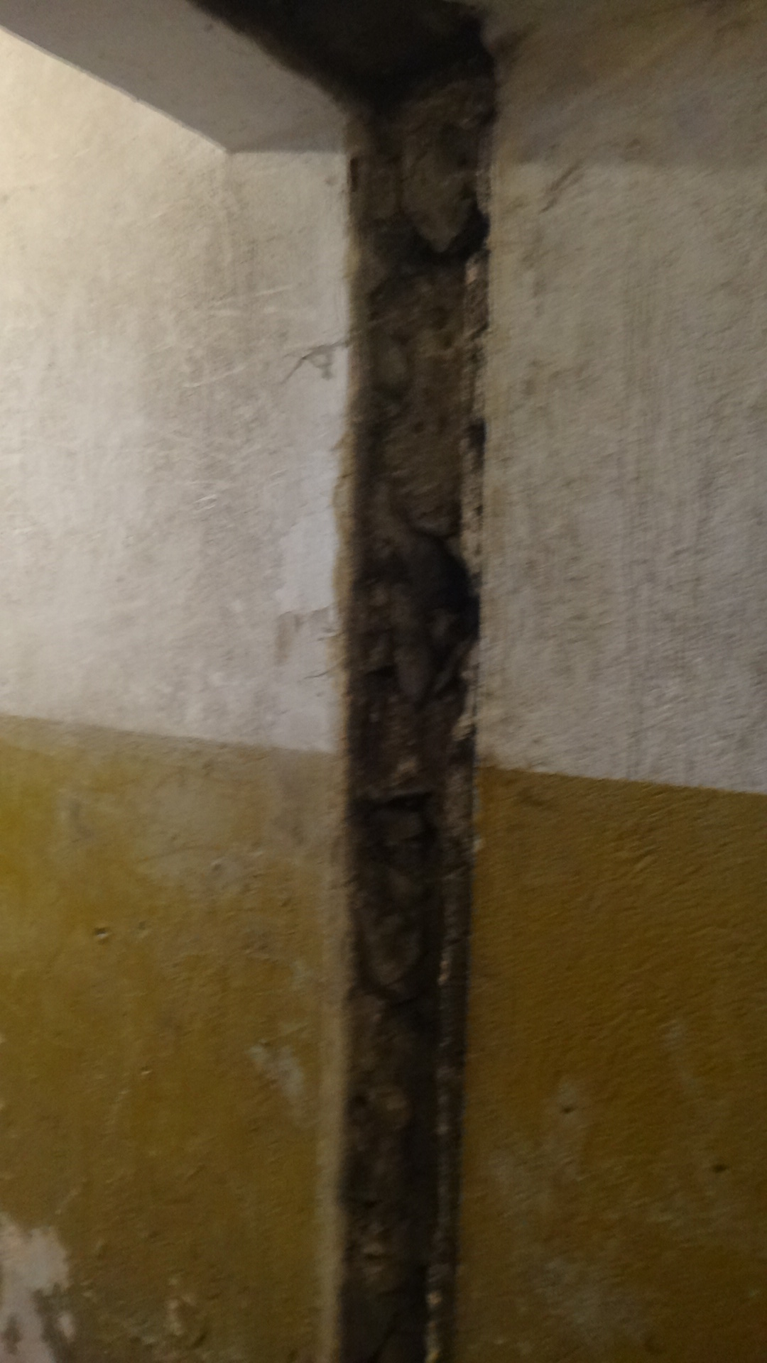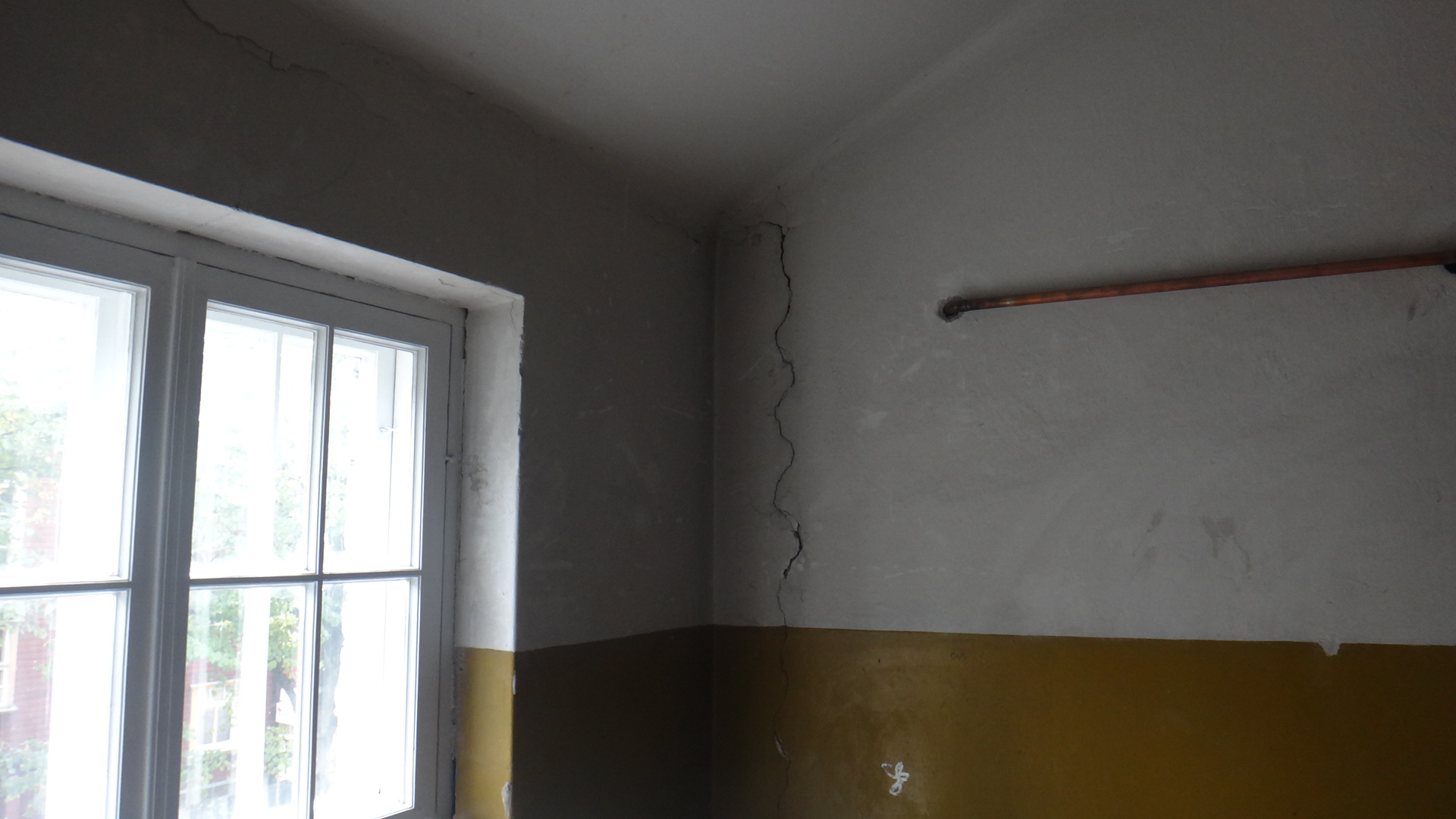 Esimese korruse aluse veemõõtjaruumi tellistest külgseina ja trepi vahel on terve seina ulatuses kuni 5 cm laiune praegu.