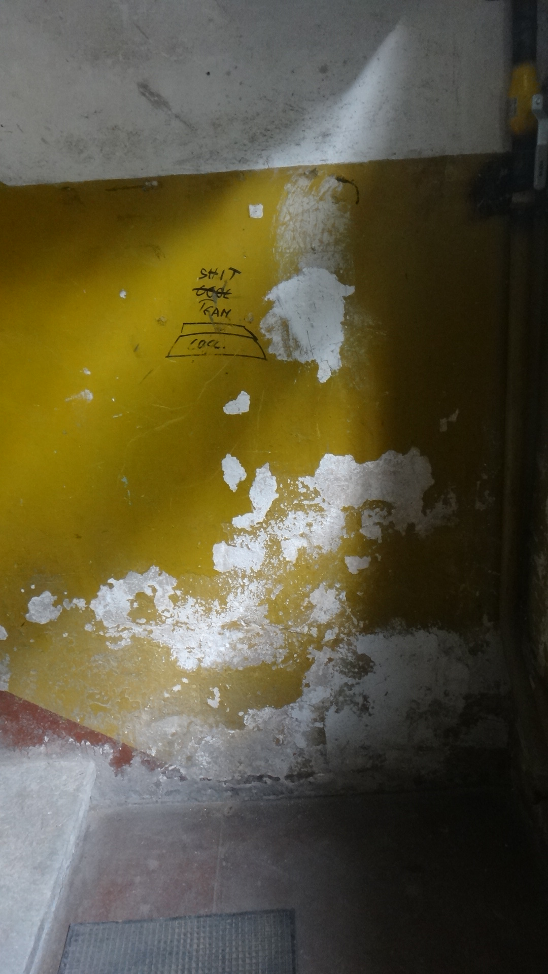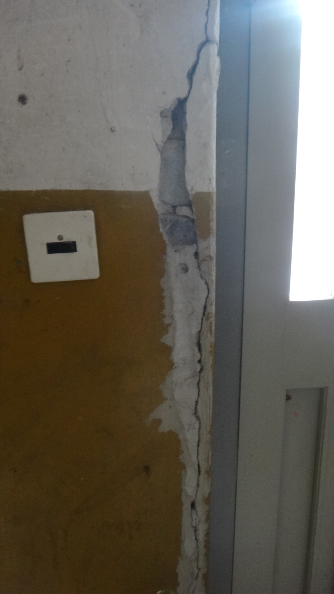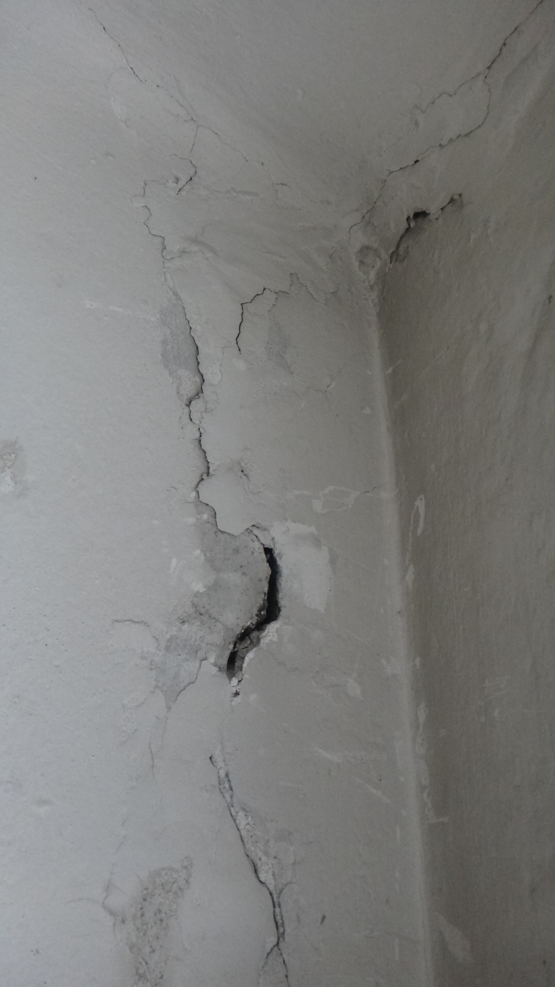 Esimese korruse aluse veemõõtjaruumi tellistest külgseina ja trepi vahel on terve seina ulatuses kuni 5 cm laiune praegu.