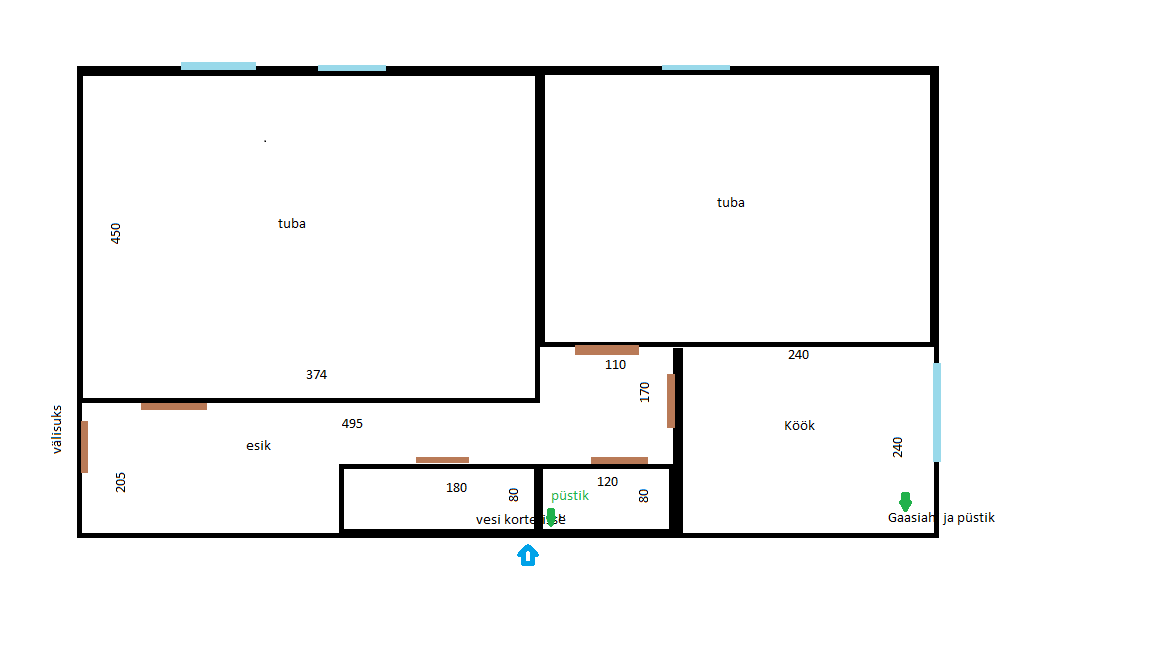 Pelgulinnas asuv puumaja, hetkel eraldi wc (80 x120) ja kõrvalruum (80 x 180), kus enne oli iseehitatud "vannituba". Üks sein on naabritega ühine, kolm seina on korteri siseseinad.