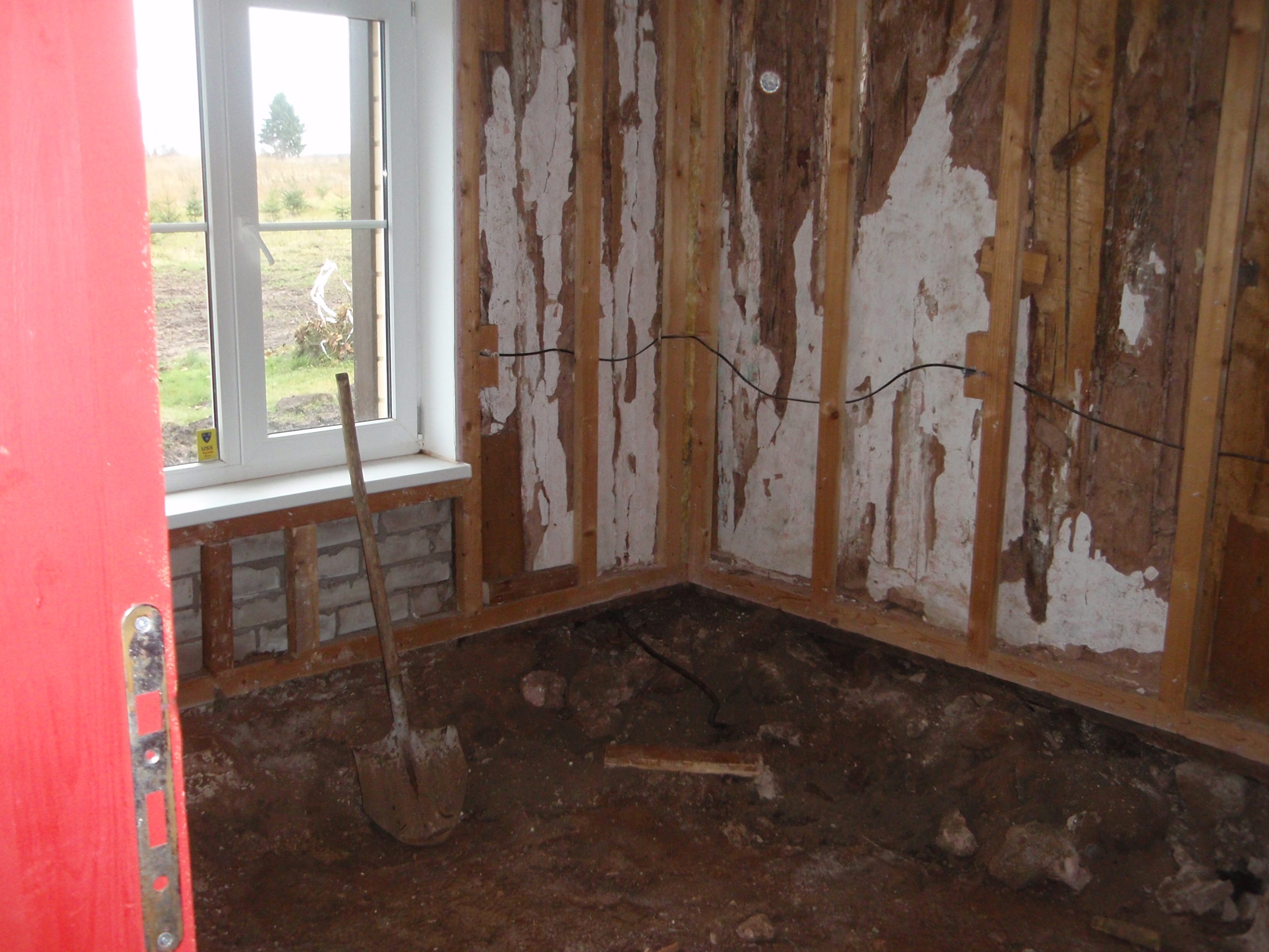 Renoveerida oleks vaja esimese korruse magamistoad.Hetkel on põrandad puidust,mis asetsevad mullapadja peal,ühe magamistoa põrand on eemaldatud ja ettevalmistused uue põranda valmistamiseks on tehtud.Uus põrand tuleb betoonist ja põrandakatteks tuleb parkett.NB!betooni ei sa valada segupirniga,kuna takistuseks on madal sild sissesõidu teel,silla kõrgus 3.60