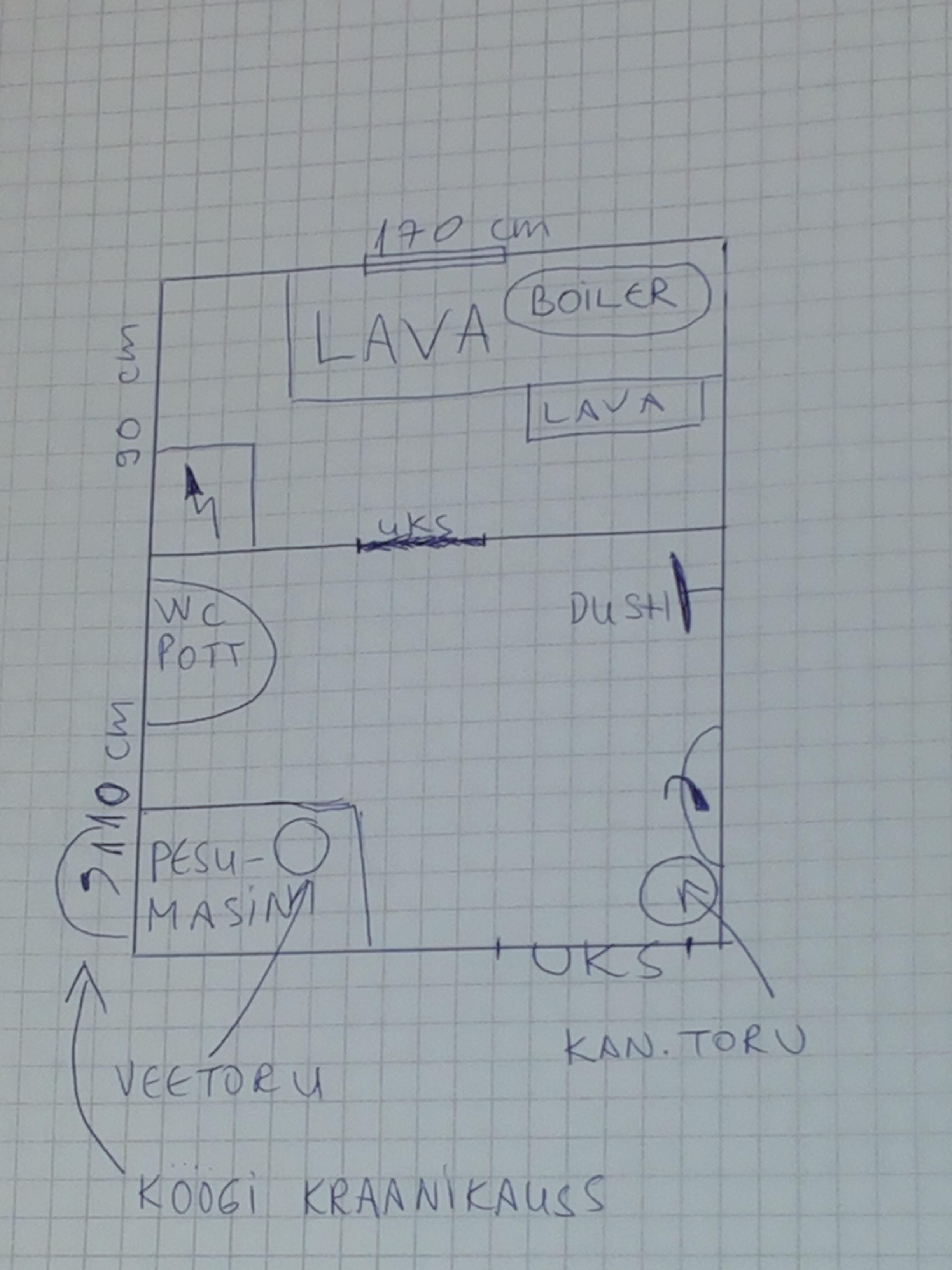 Oleks tarvis teha sellest pindalast saunaosa 0,9m * 1,7m= 1,53m2.