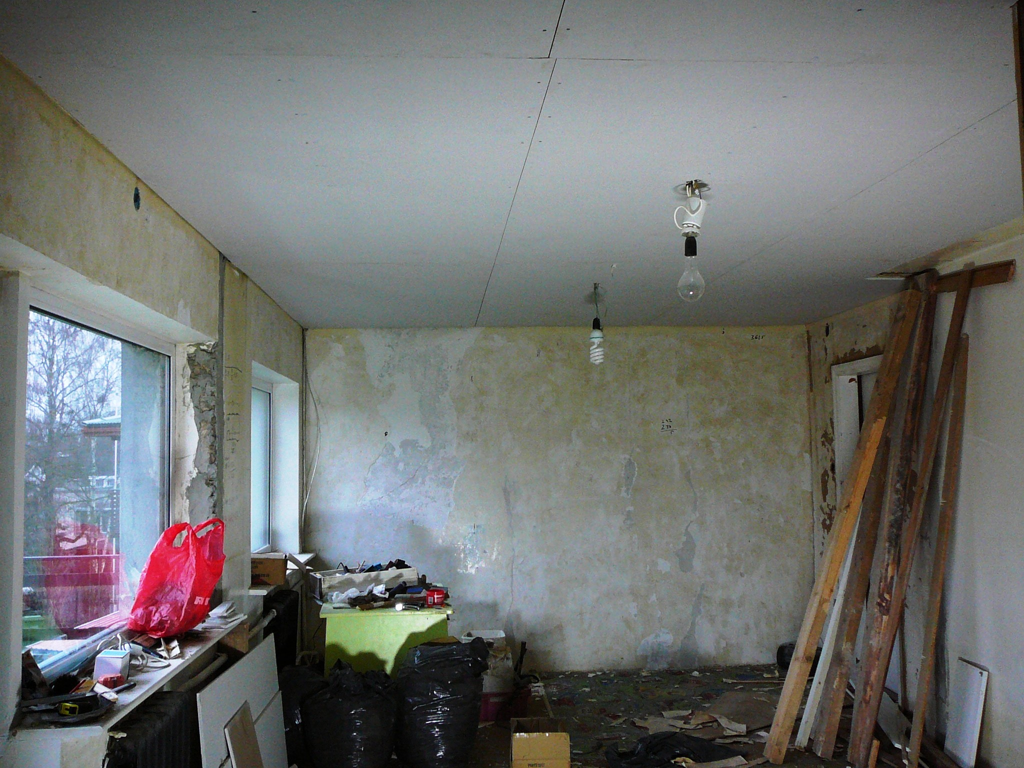 30m2 avatud kööktoa seinte lagede ja aknapalede pahteldamine värvieelne ettevalmistus. Laes cyprok. Seintel mõrad, kuid cyprok seintele meeleldi väldiks