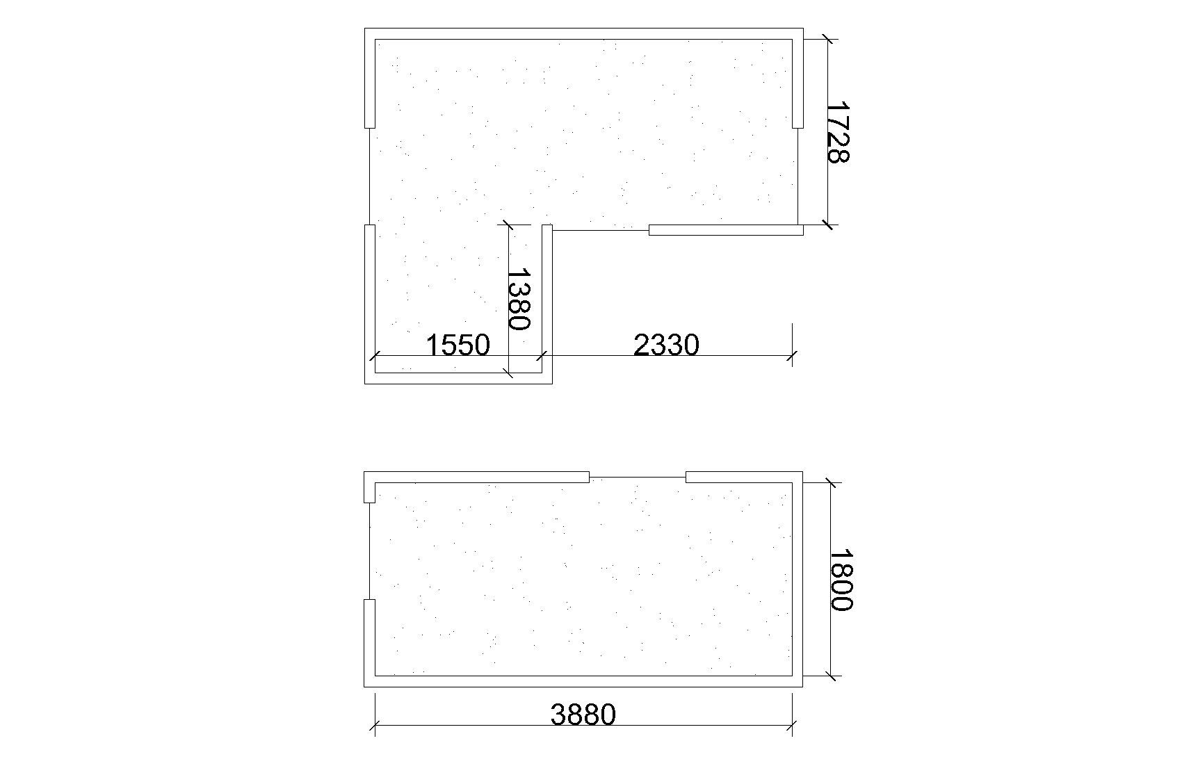 Joonisel antud vannitubade mõõdud ja uste asukohad. Uste ümber tulevad piirdeliistud, mis jäävad plaadi peale.
