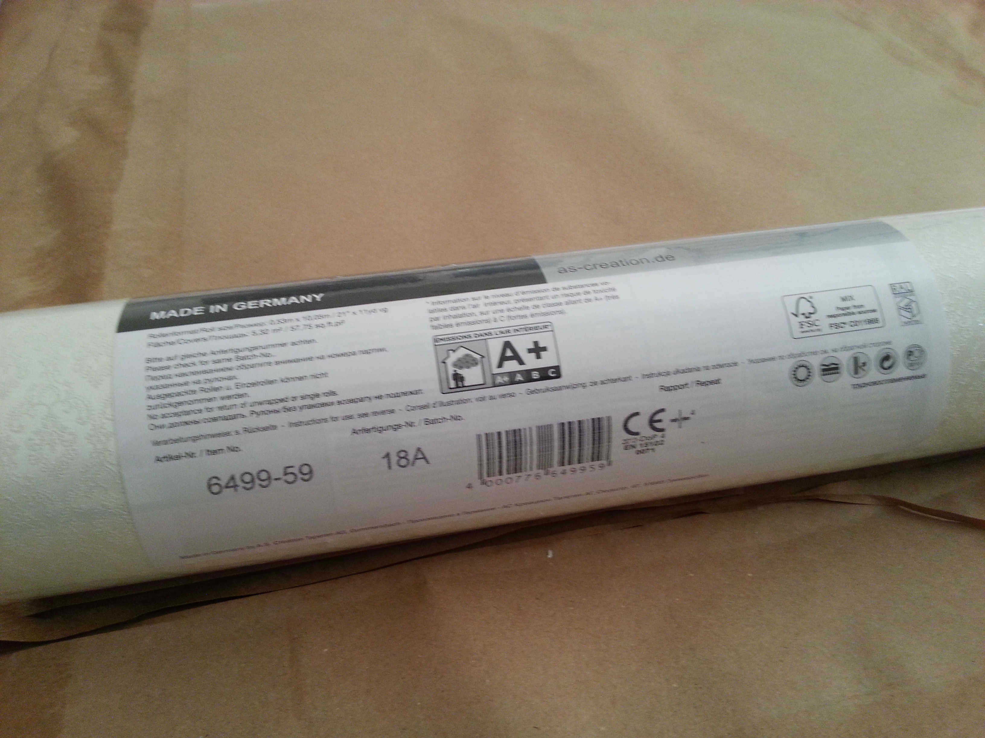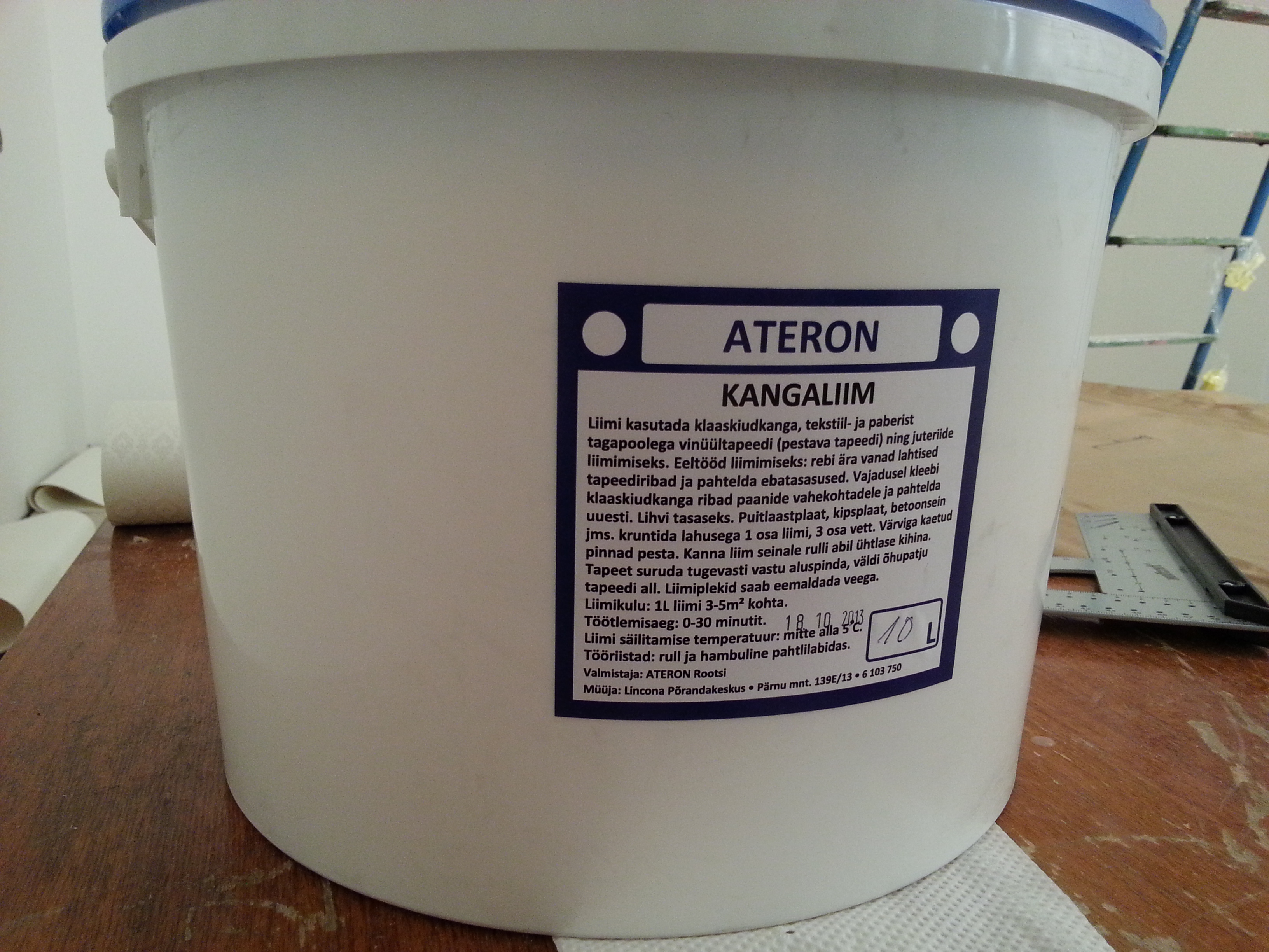 Pabervinüül, maht 2 tuba, kokku ca. 66 m2 seina. Laest 3 cm, joon peale märgitud laseriga.