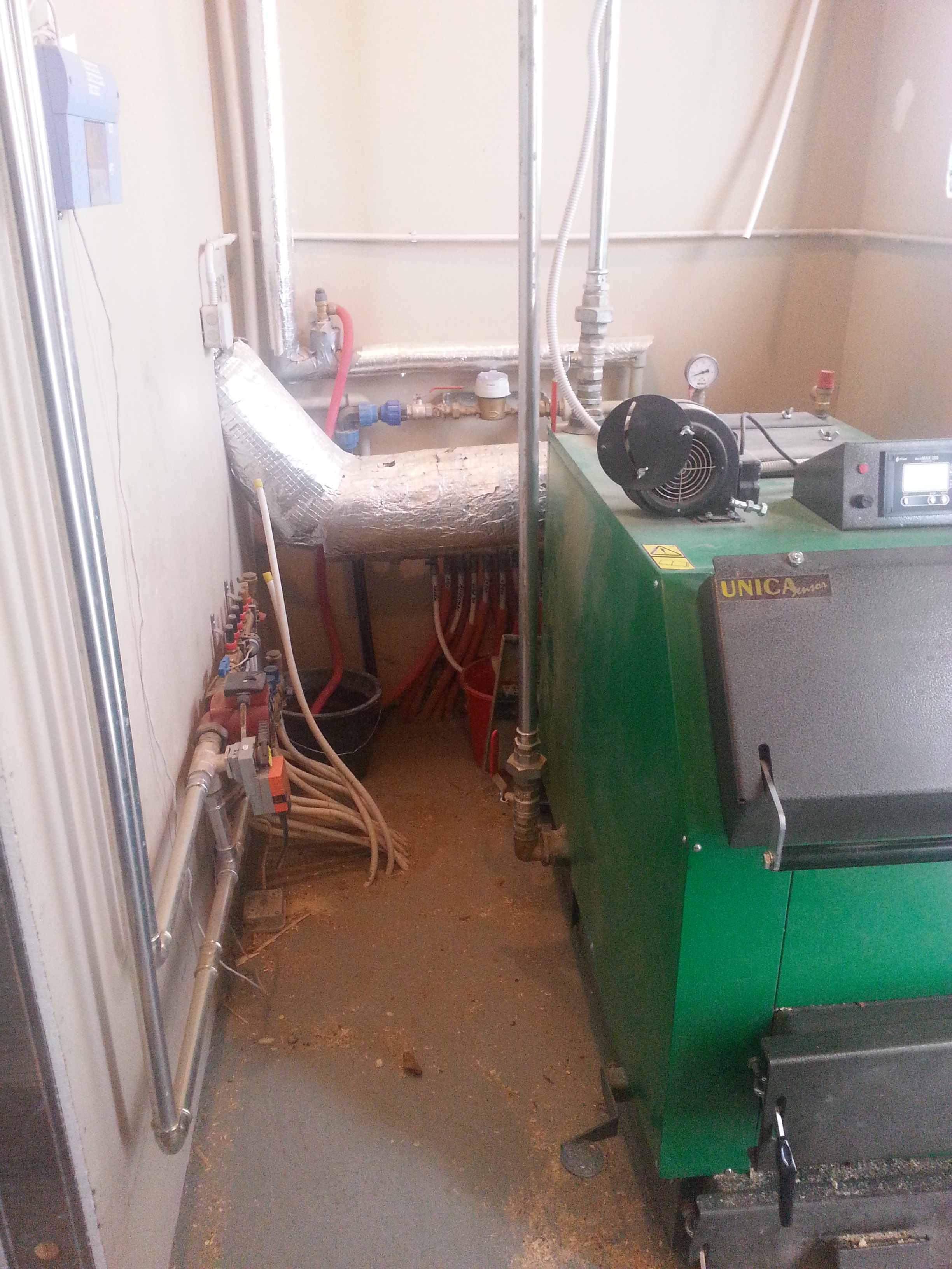 Küttesüsteem baseerub tahkekütte katlal ja akupaagil, mida juhib Ouman automaatika. Küttesüsteemi kõik osad on valmis ehitatud. Tegemata on ja tööde teostajal tuleks teostada: