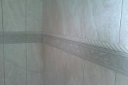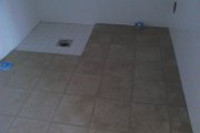 Pesuruumis on vaja plaatida põrand ja 3 seina. Põrand on mõõduga 1,4x2,5 m ning maha läheb plaat 45x45 cm. Kummaski lühemas seinas on oma äravoolurenn ning vajalik kalle on olemas.