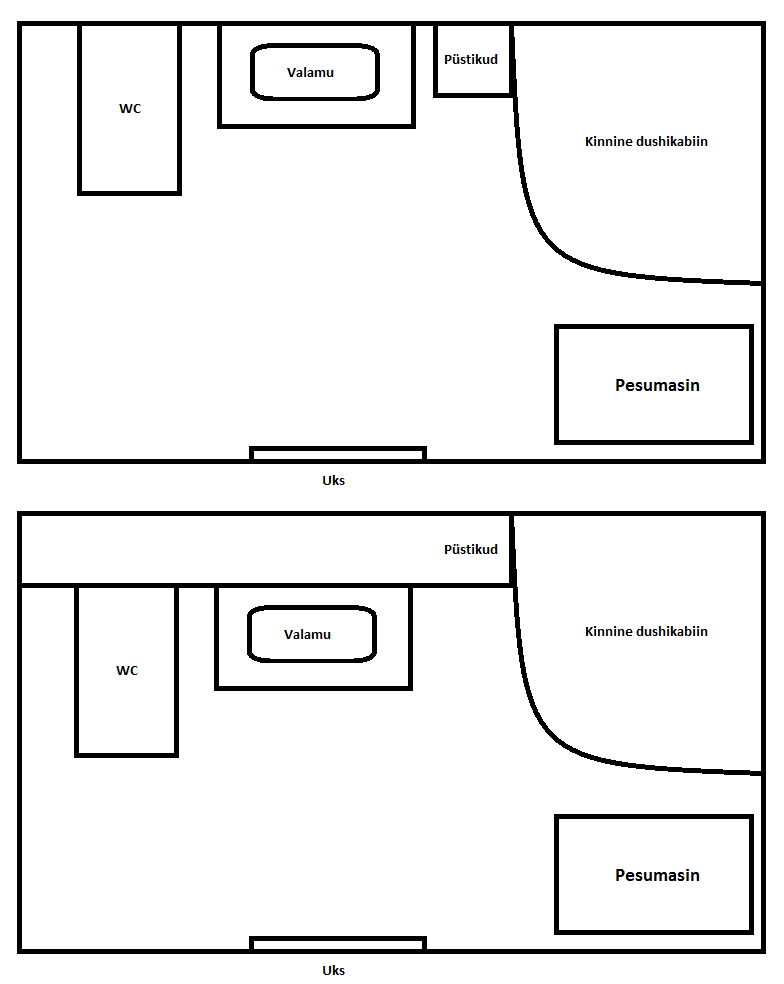 Pakkumine teha tööde hinnale, materjalid tasun Teie tsekkide alusel või ostan ise. Teiepoolsed poodide soodustused võtan arvesse. Võite anda ka oma hinnangu materjalide hinnale ilma WC, valamu, dushikabiini ja kappideta.