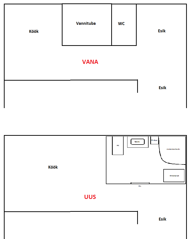 Mustamäe paneelmaja WC ja vannitoa karbi väljalõhkumine, uue ja suurema (+0.5m) karbi ehitamine esiku arvelt.