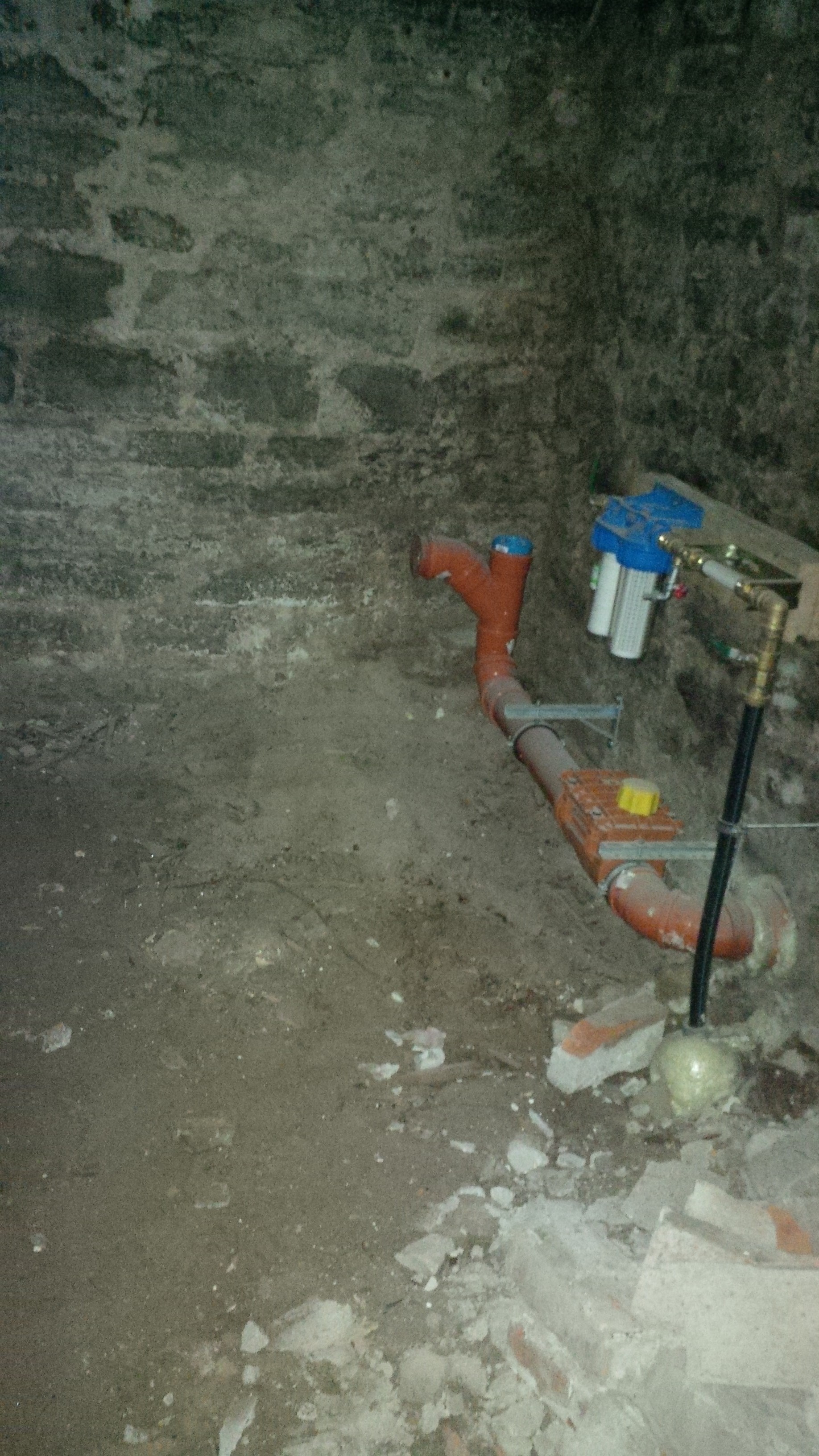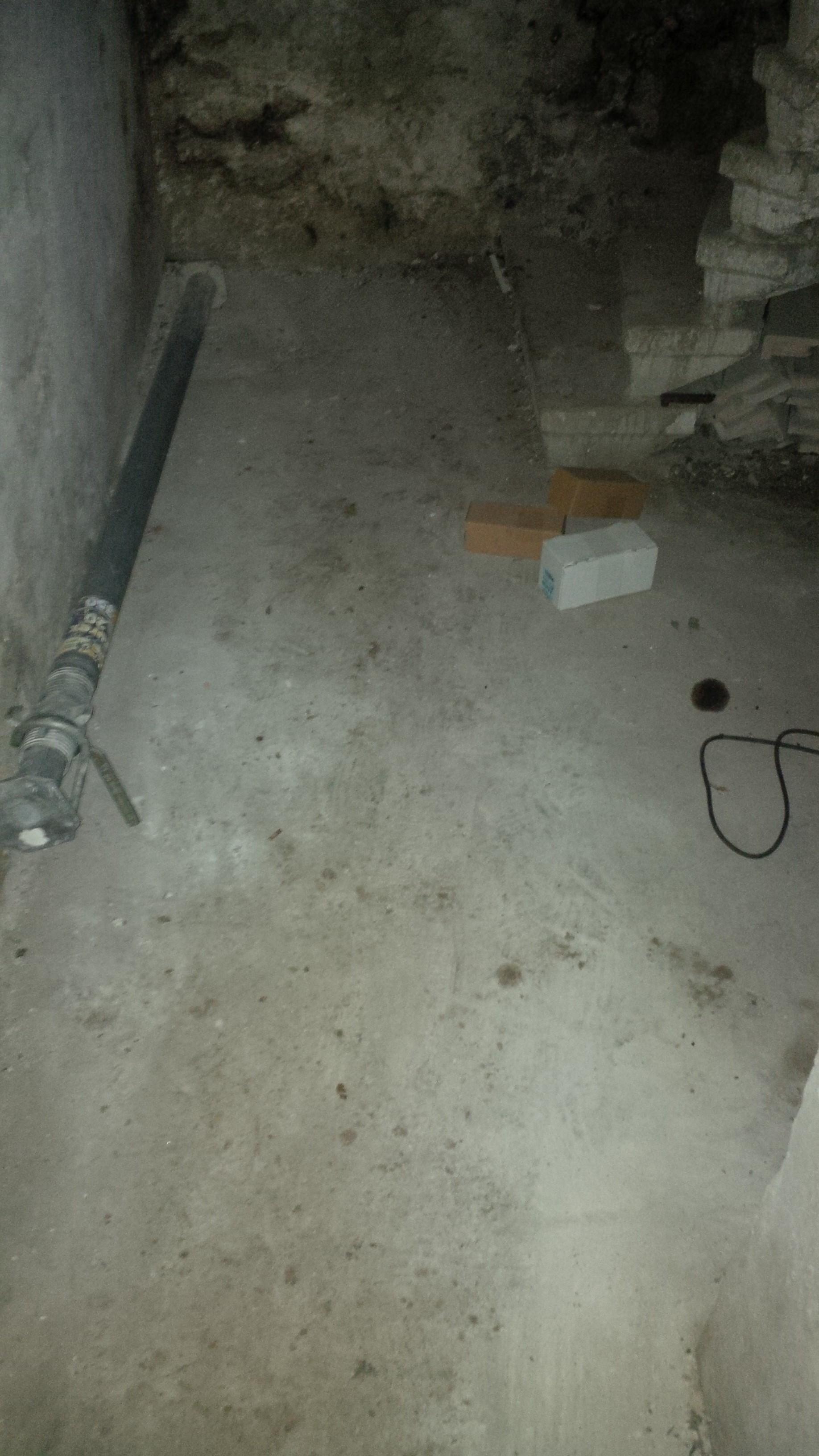 Täna põrandal õhukesed paekiviplaadid, mille all liiv.Liiva saab vajadusel välja keldri akendest.