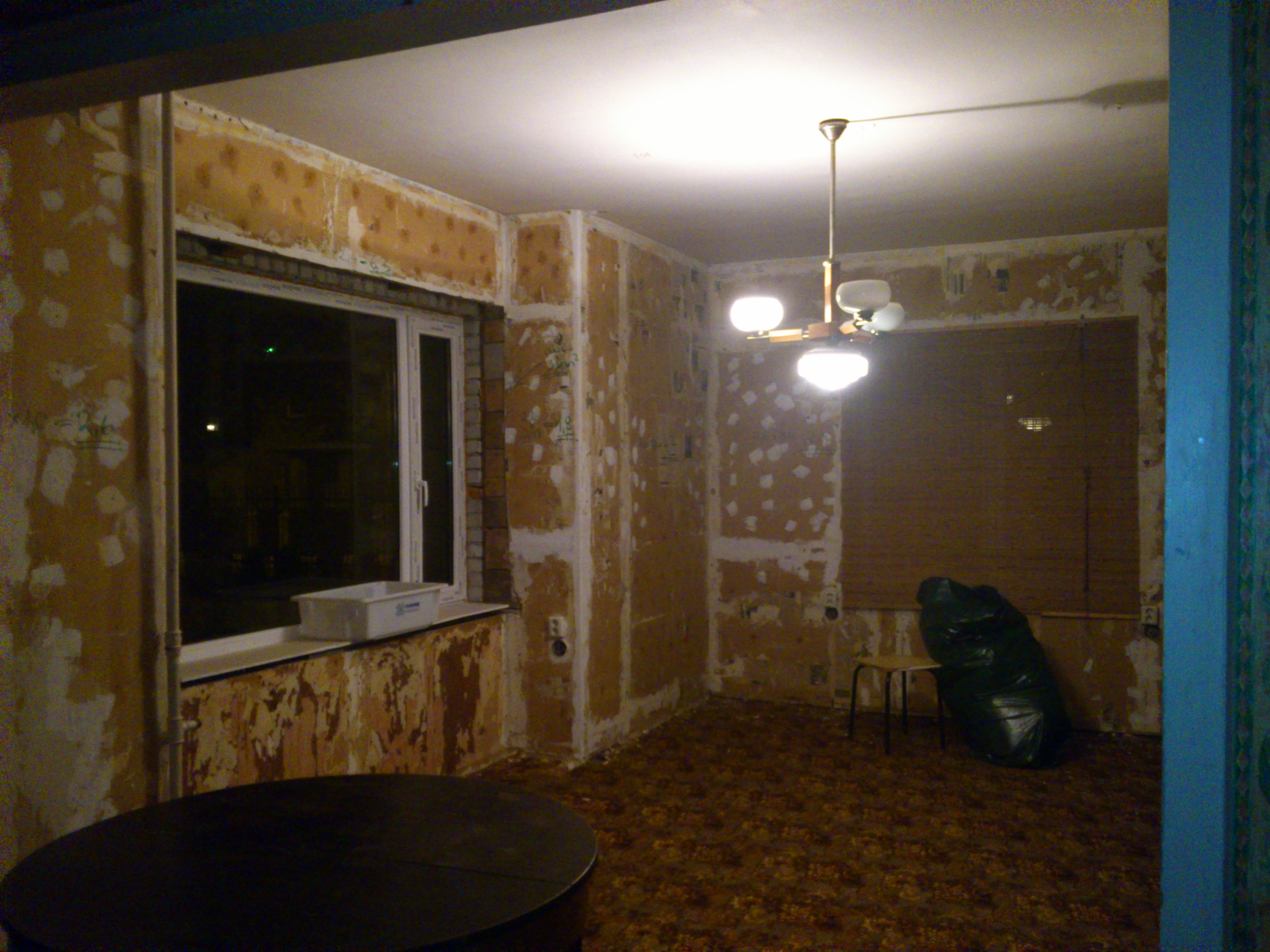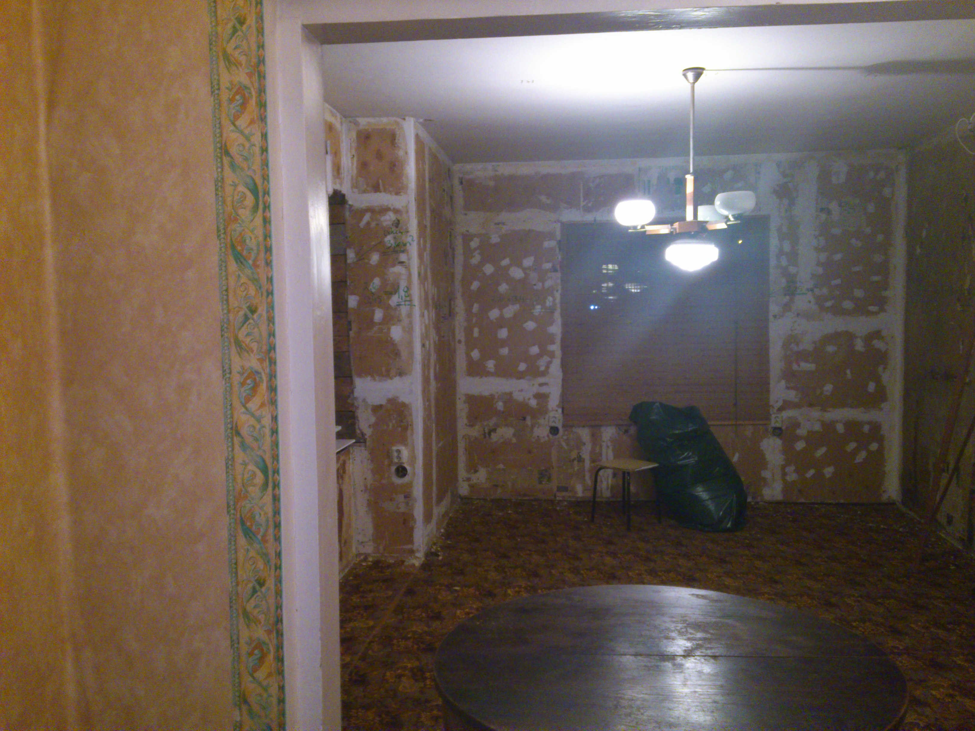 Remonti vajab suur söögi/elutuba. Toa mõõtmed ilma avausteta (aknad, uksed) ca.96 m2. Sellest lae pindala ca. 55m2. Põranda pind mõõtudest välja jäetud.