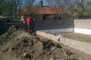 Ettevalmistustööd (olemasoleva terassi lahtivõtmine, vundamendi tööd koos kanalisatsiooni ühendamisega olemasolevasse äravoolu. Olemasolevasse palkseina ava tegemine.