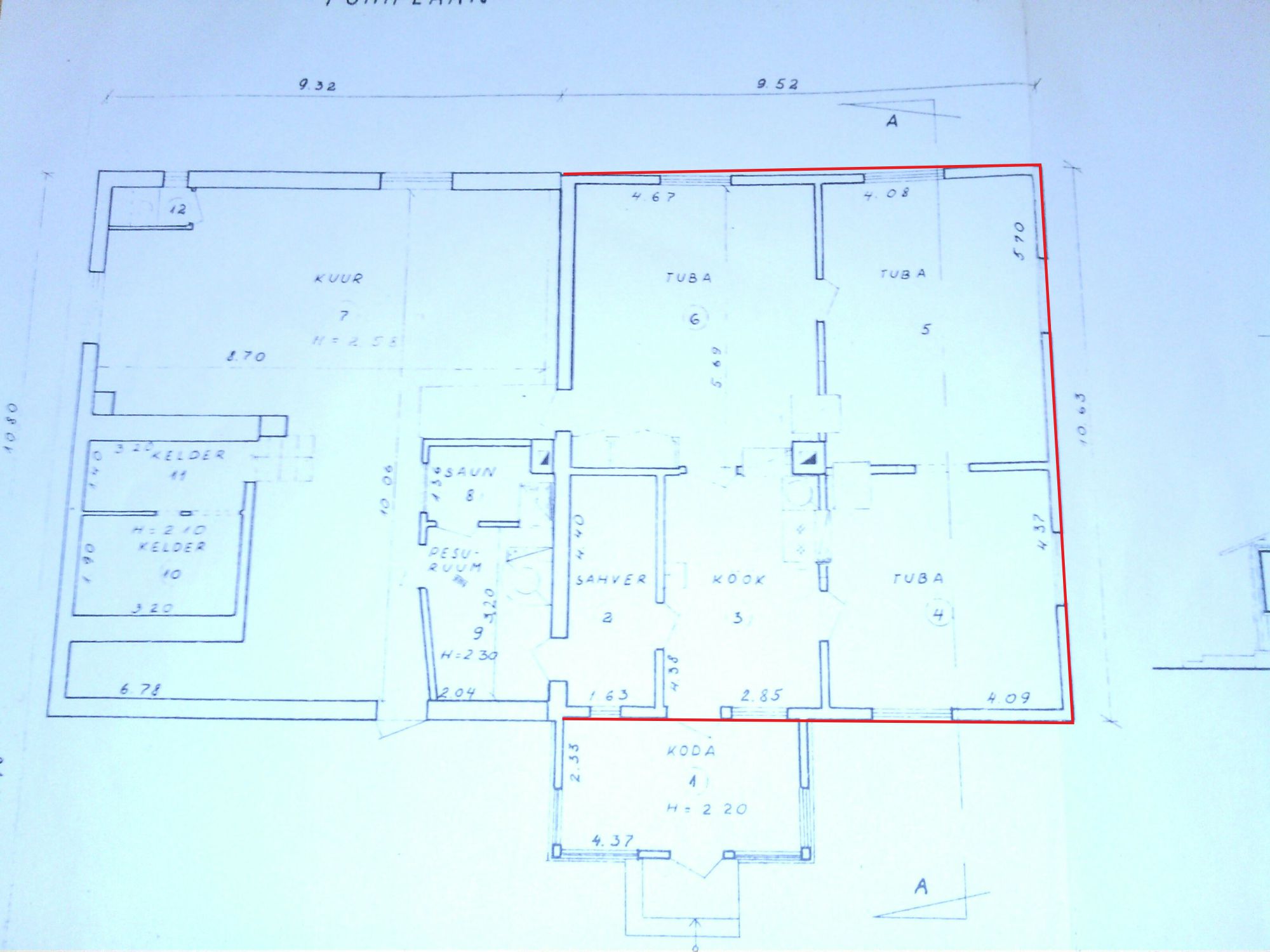 Vana talumaja, püstpalkseinad. Pool majast on silikaat-tellisest, pool maja palgist. Tarvis vahetada püstpalkseina alusvöö (1 palk, rõhtsalt). Lisatud joonisel on vahetamist vajav palgiosa näidatud punase joonega, kogupikkus ~30 jm.