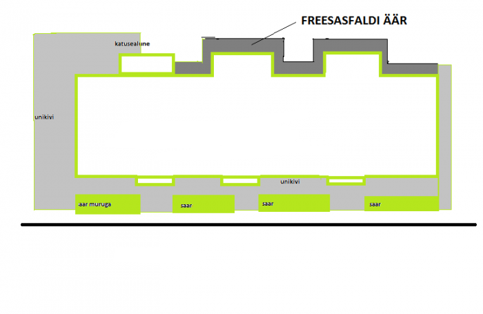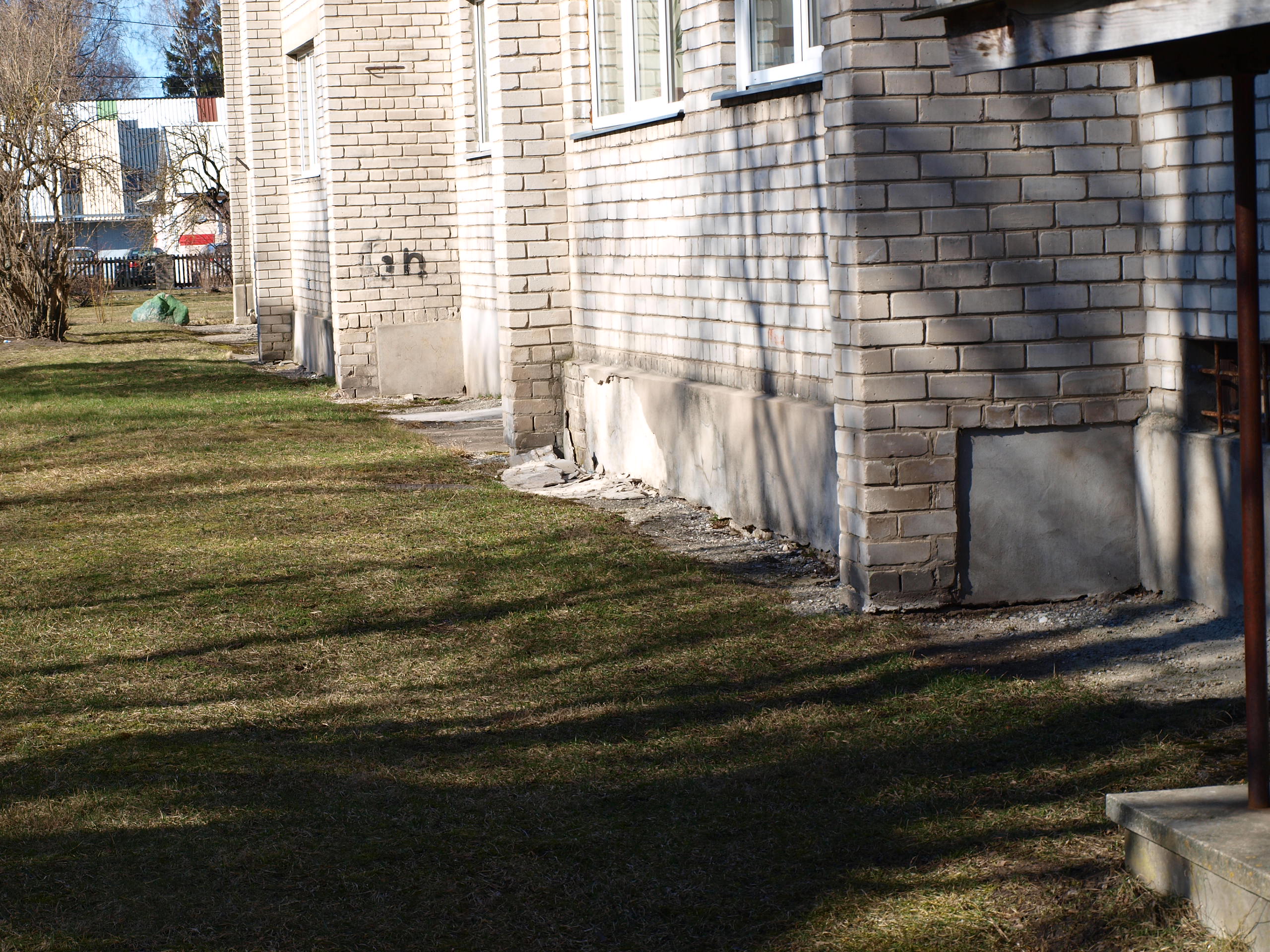 Plaan on soojustada ära hoone sokkel ja täita vundamendi ääred. Hoone tagumine seinaäär,katta 0.5 m laiuselt freesasfaldiga,trepikodade esisele alale paigaldada unikivi,vana asfalt tuleb eemaldada alt ära,paigaldada vihmavee püstakute alla veerennid,mis juhivad vee kaevu (kaevud asuvad maja otstes. Murusaarte äärde paigaldada uued äärekivid.