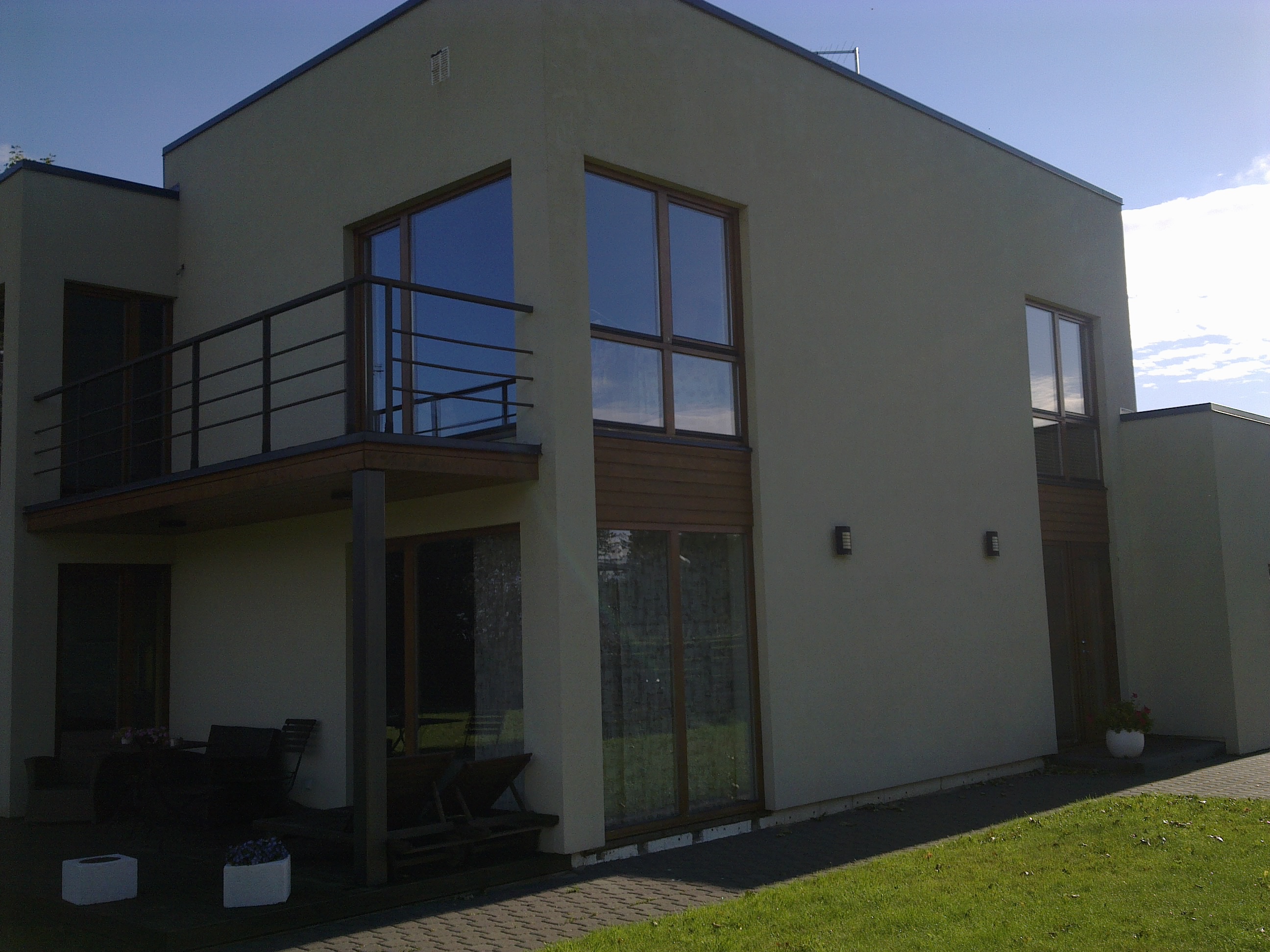Eramaja renoveerimistööd Viimsis. Välisfassadi vana krohvi eemaldamine ja uuesti krohvimine.