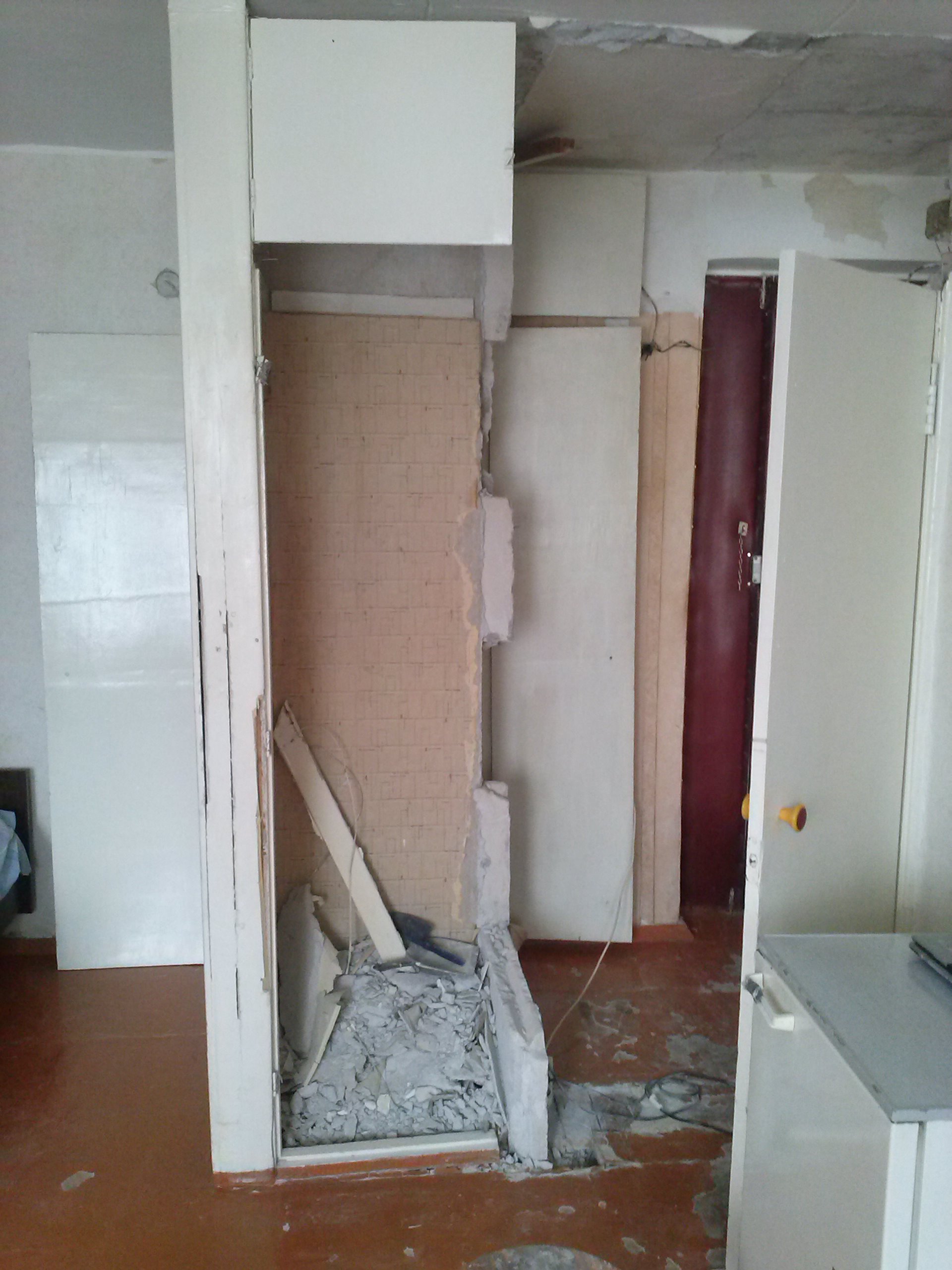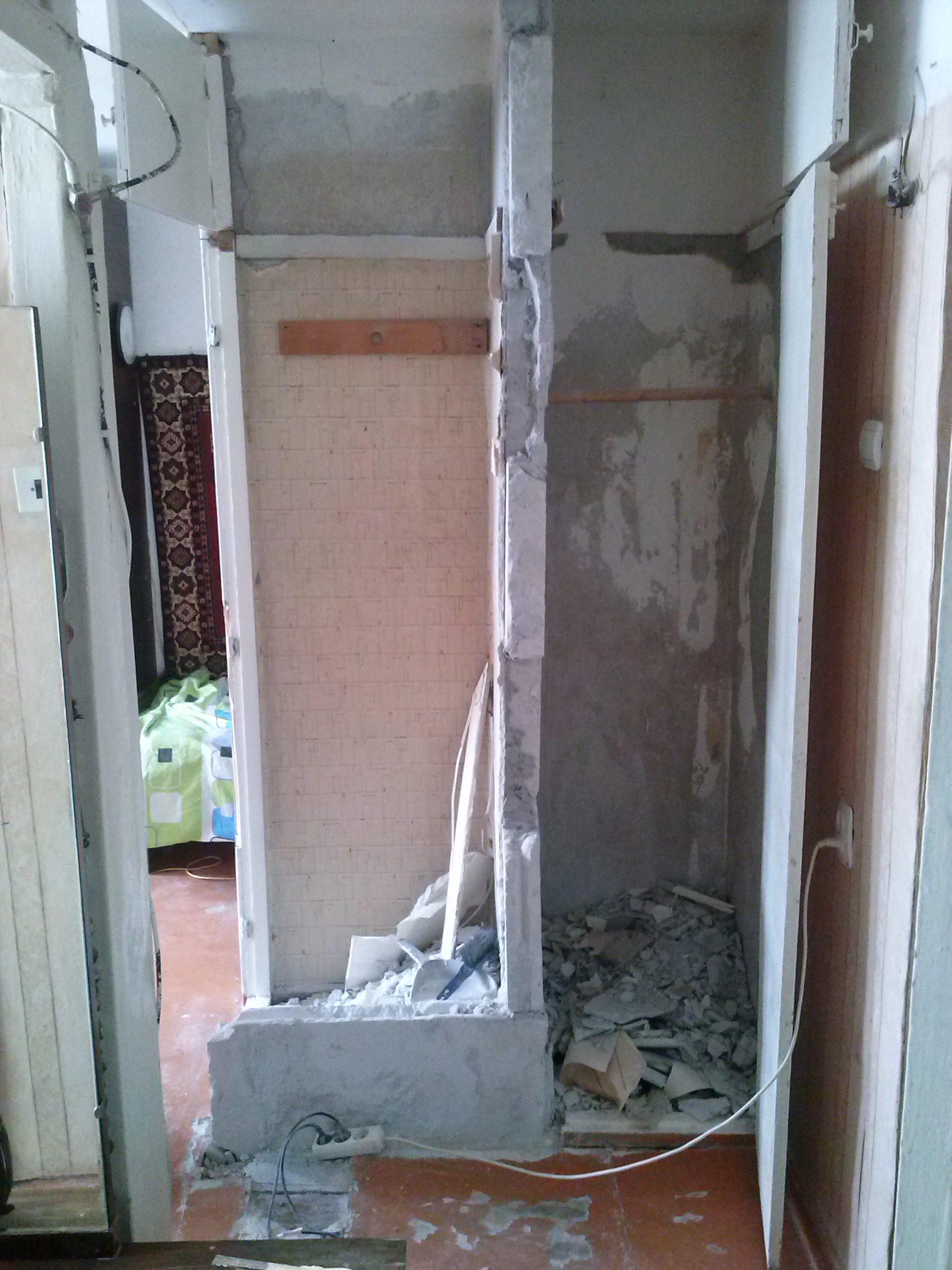 Oleks vaja ehitada esiku ja toa vahel küpsplaadist sein umbes 1,2 x 2,5 m ja paigaldada uks, viimistlust ei ole vaja. Enne tuleks lõpuni ära lõhkuda vana sein ning utiliseerida prügi.