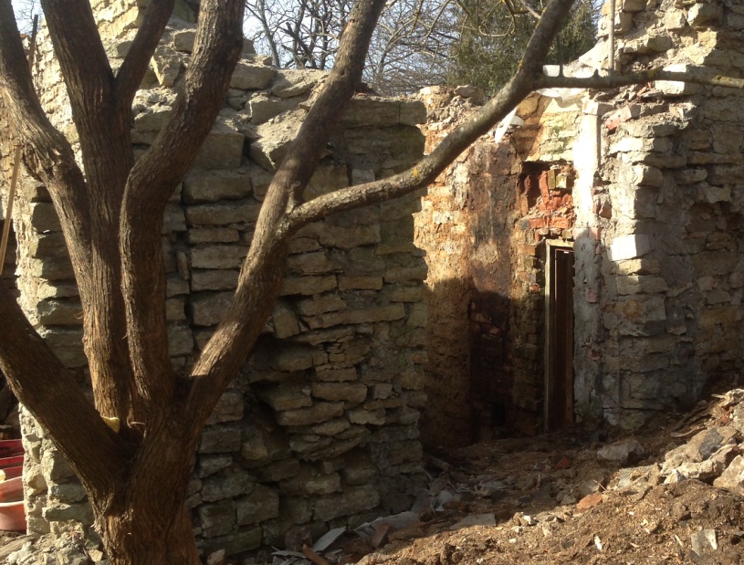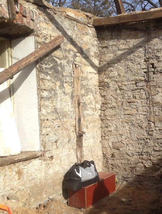 Vana müüri kivide asendamine, toestamine, parandus 1,45m jupil ja 1m jupil