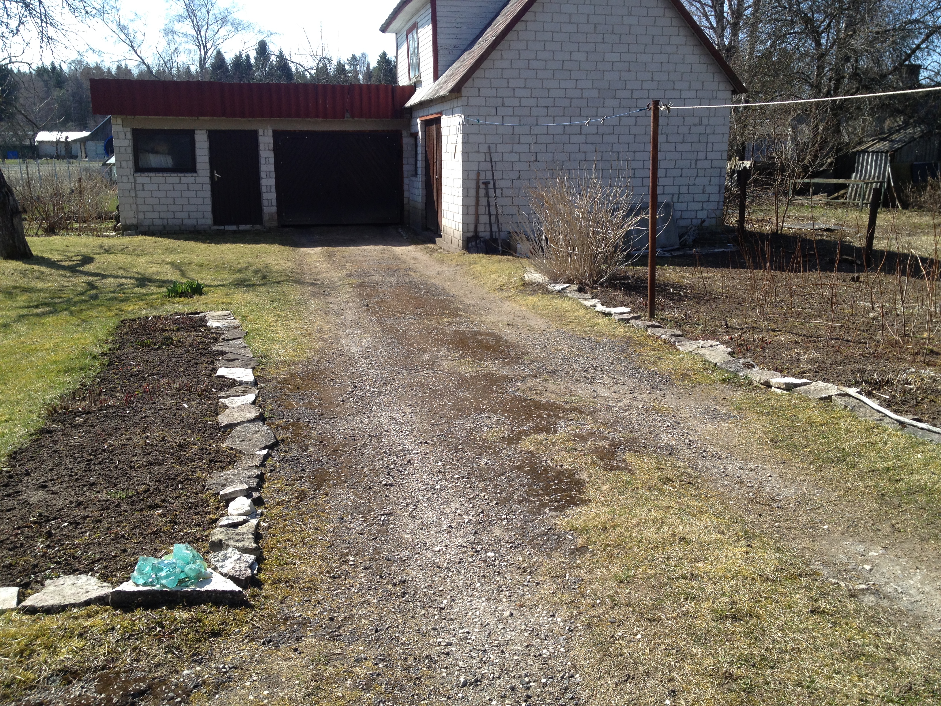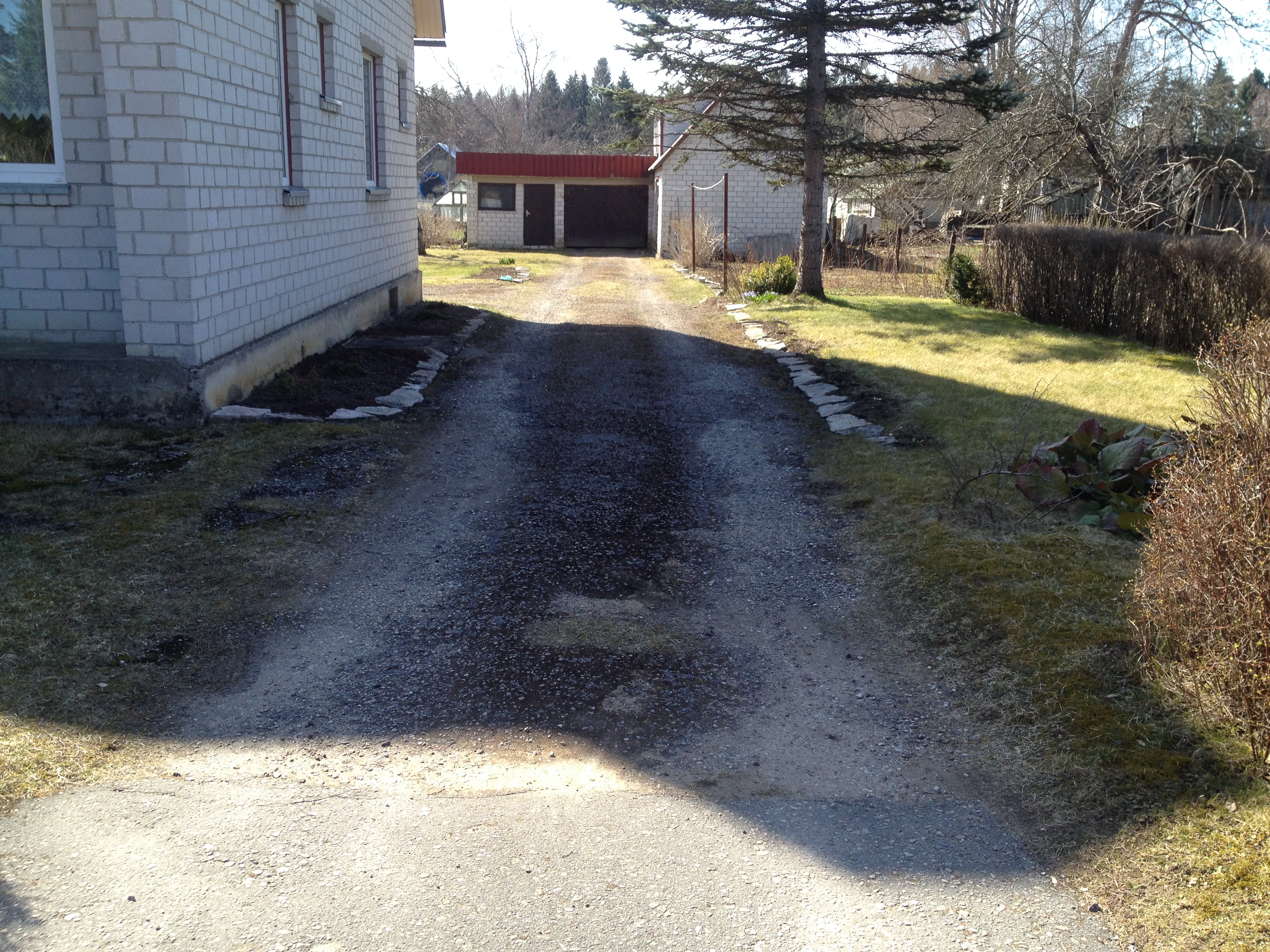 Sadevee restkaevu paigaldus garaažiuste ette (läbimõõt 600mm). Eesmärk kaevata tee keskele auk ja panna sinna sisse kaev kuhu koguneks garaaži katuselt tulev vihmavesi ja sealt edasi imbuks maasse. Hetkel tekib garaaži ette pärast sadu suur lomp.